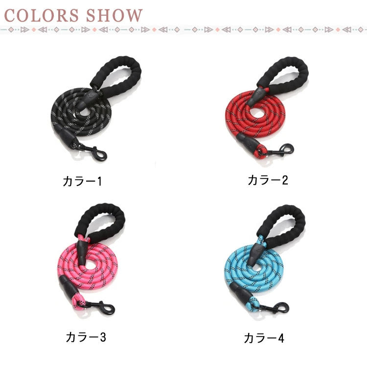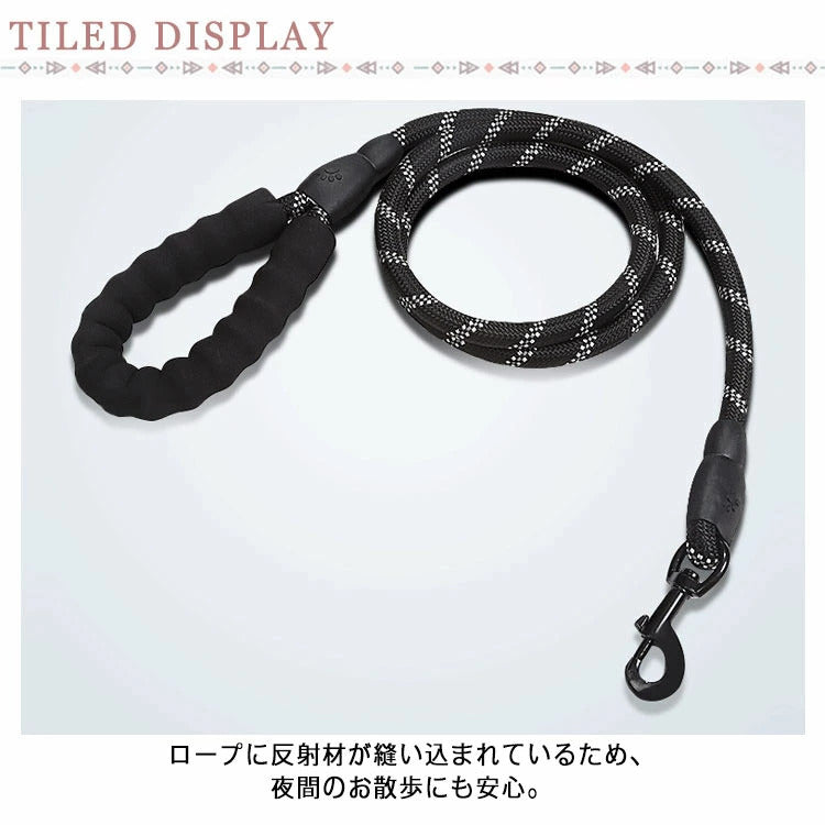 予約受付中丈夫 リード 犬用 ロープリード 大型犬 ワンちゃん 長さ150cm 直径12mm 持ちやすい 痛くない 衝撃吸収 中型犬 散歩 リーシュ リフレクター 反射テープ 光る 夜間安心 ペットリ