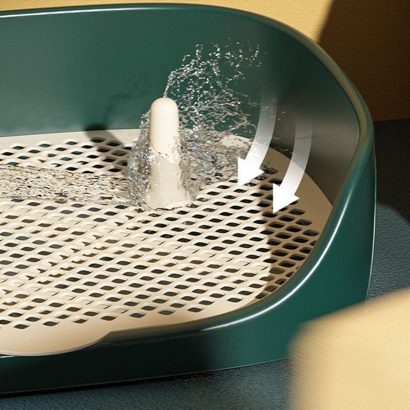 通常の犬用トイレに比べ、壁やフチが高く設計されており、