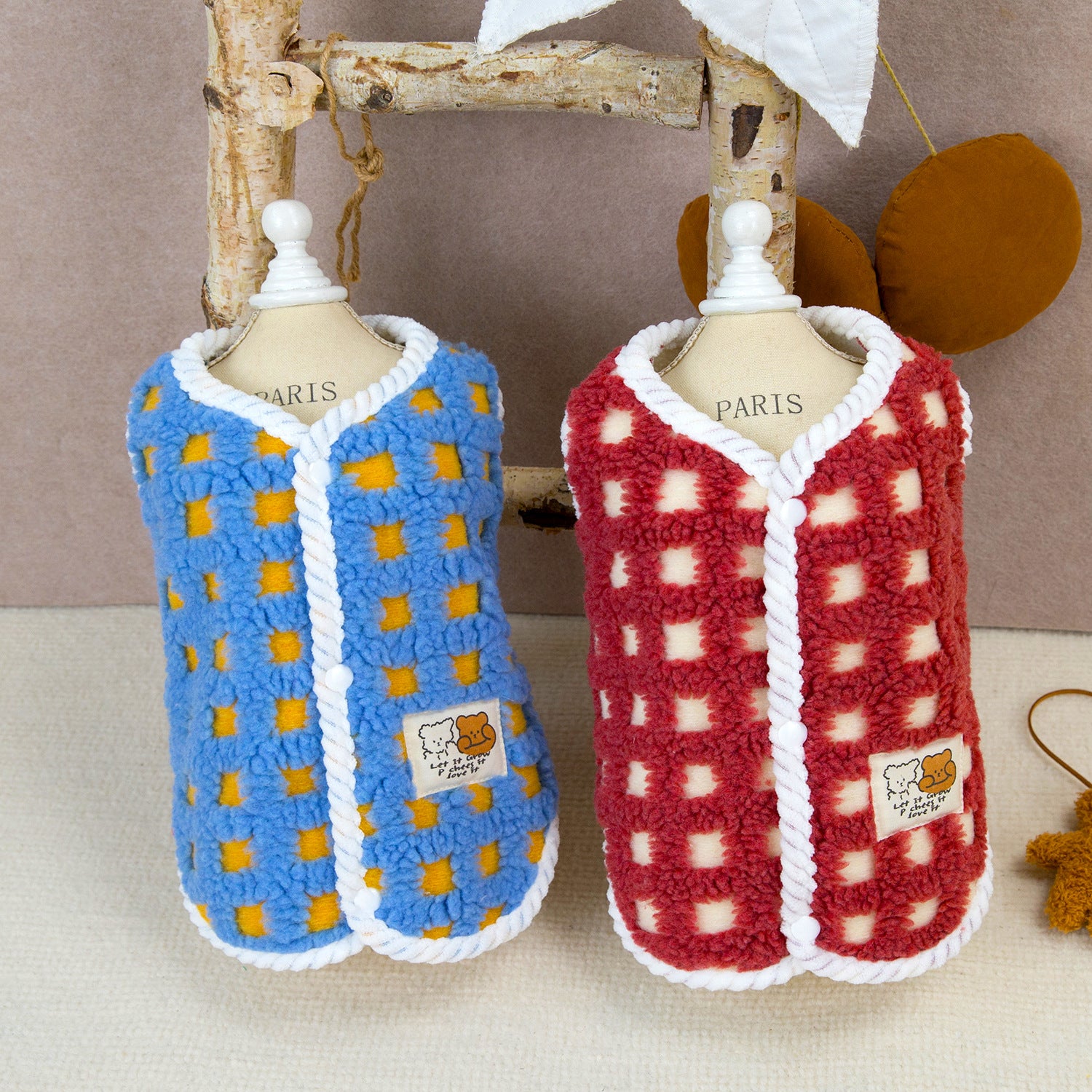 人気ペット用品犬服猫小型犬厚手フリース快適立体格子縞フリースベスト