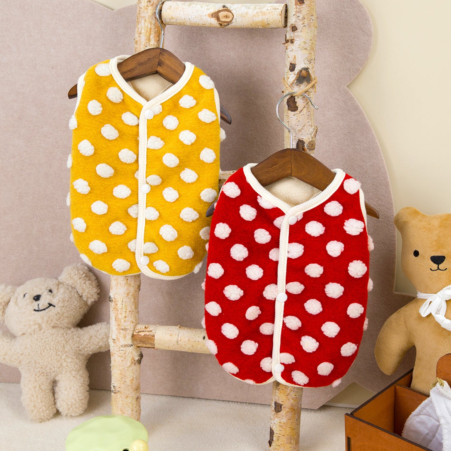 人気ペット用品犬服猫小型犬快適テディキュービック水玉フリースベスト