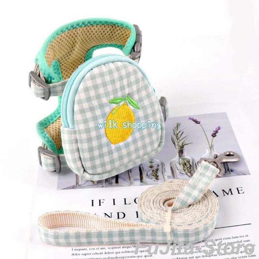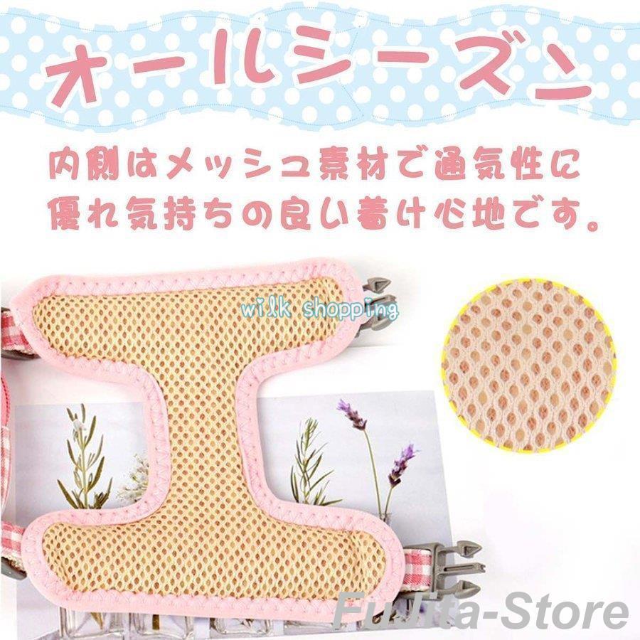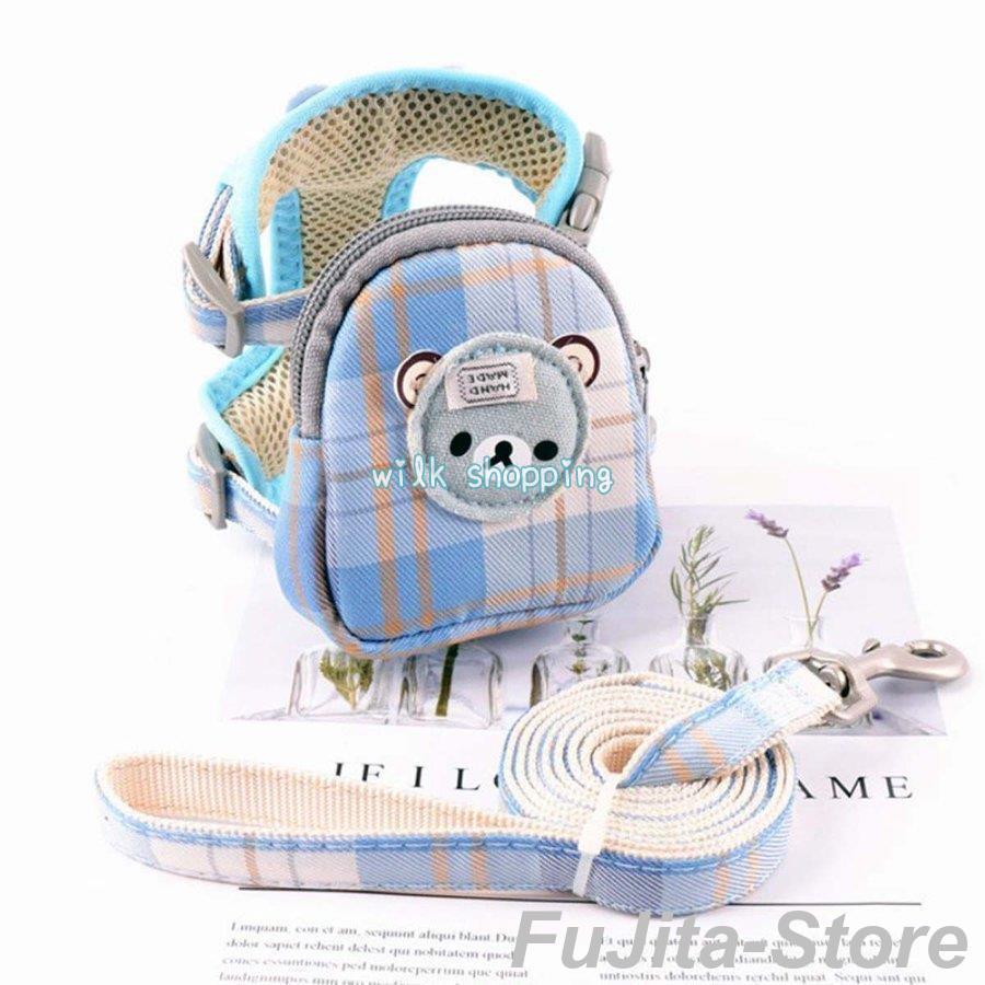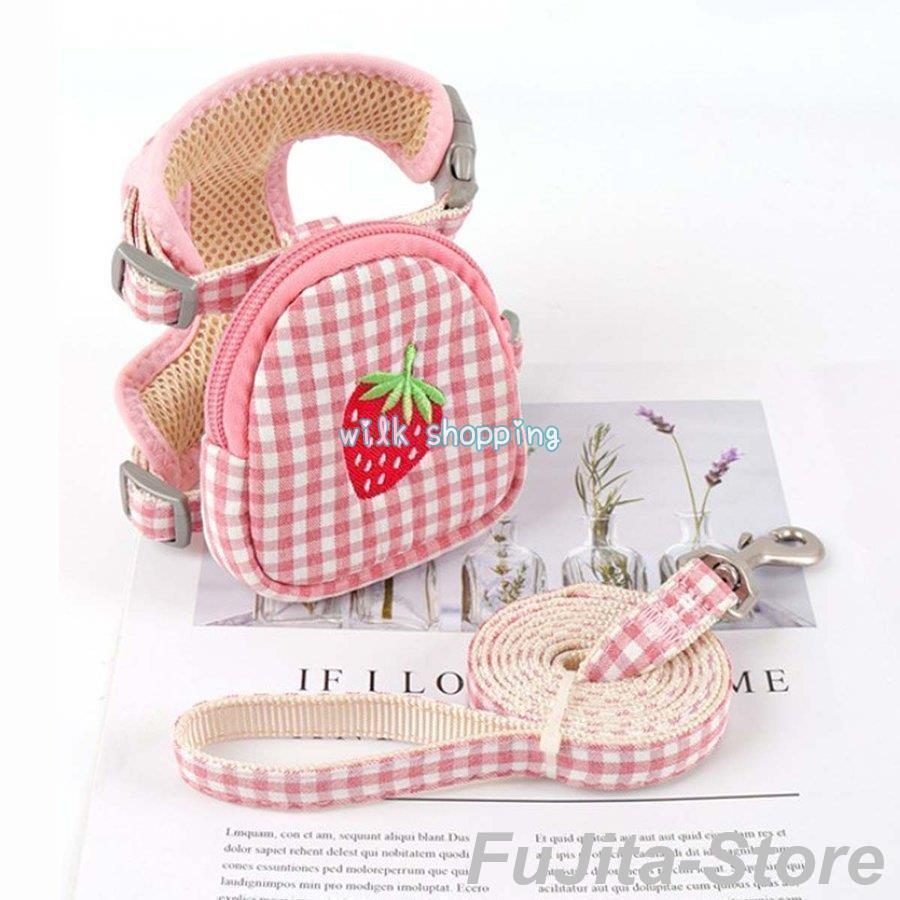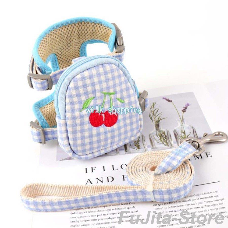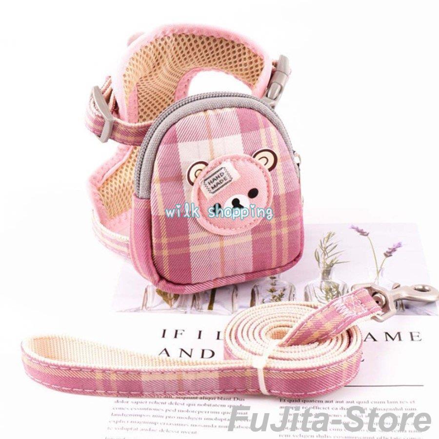 人気商品,犬 猫 ハーネス リード セット ポーチ付き 小型犬 散歩 かわいい チェック柄 胴輪 簡単装着 脱げない 調整可