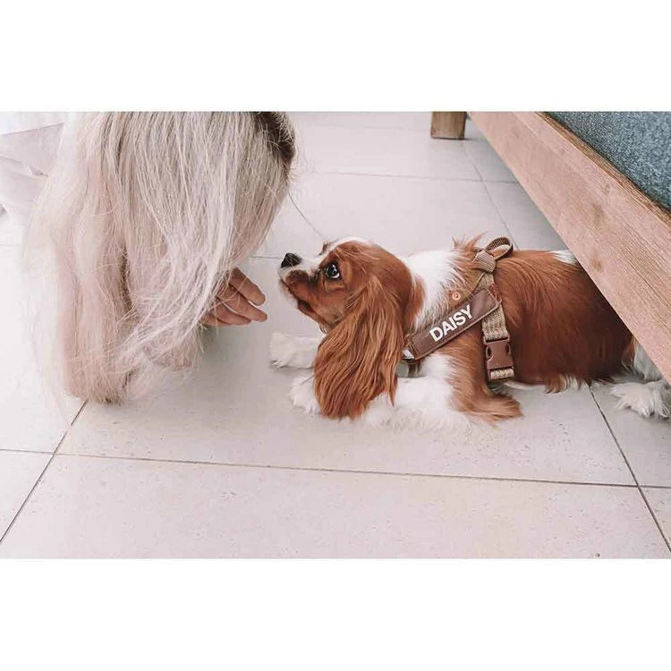 簡単に装着できるミニマルデザインのハーネスで、アクティブに動く愛犬やオーナー様に最適。