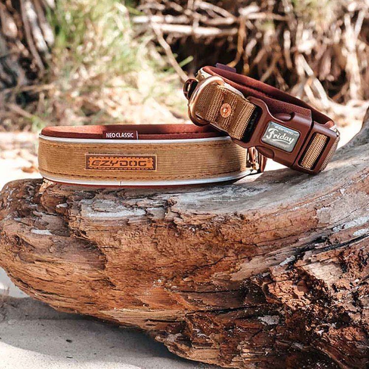 内側にウェットスーツ素材を使用しているので肌に優しく、軽くて丈夫、もちろん防水で汚れにくい首輪です。