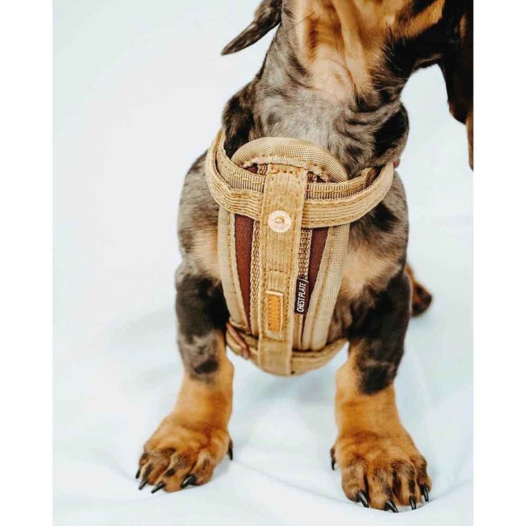 引っ張られる力をチェストプレートで緩和する、軽量且つ丈夫なハーネス。