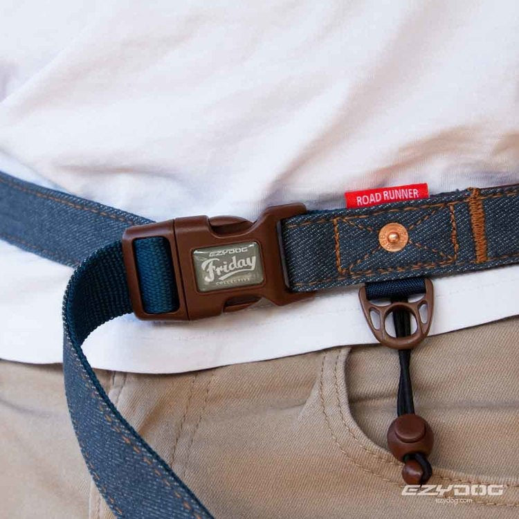 ショック吸収機能付きで愛犬の首やオーナー様への負担が軽減される腰に巻くタイプのリード。