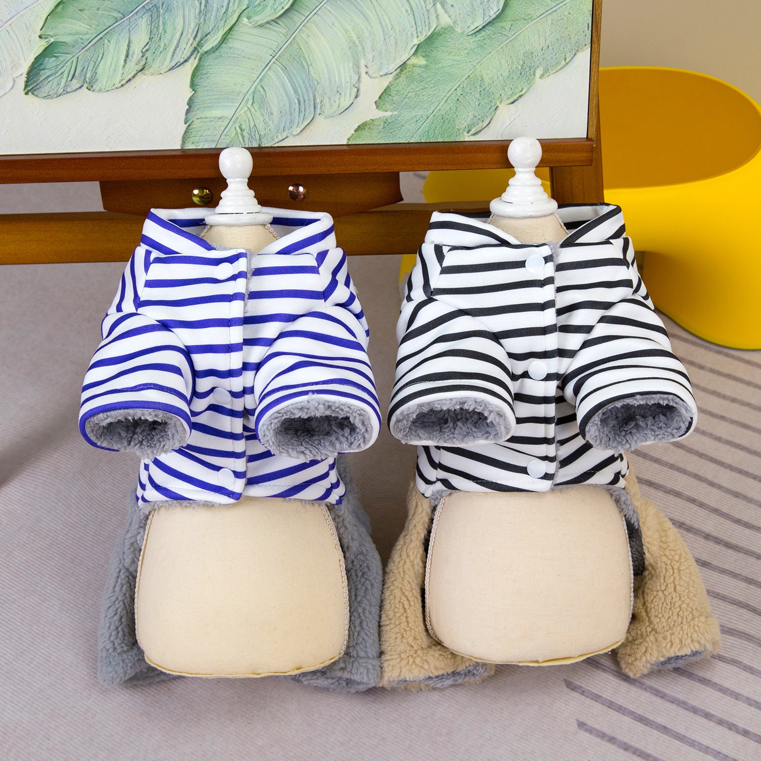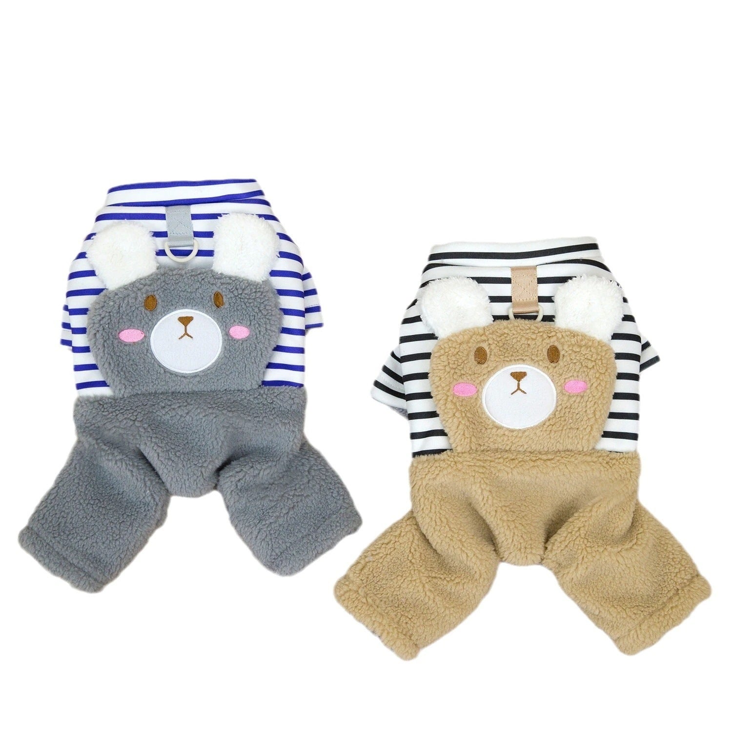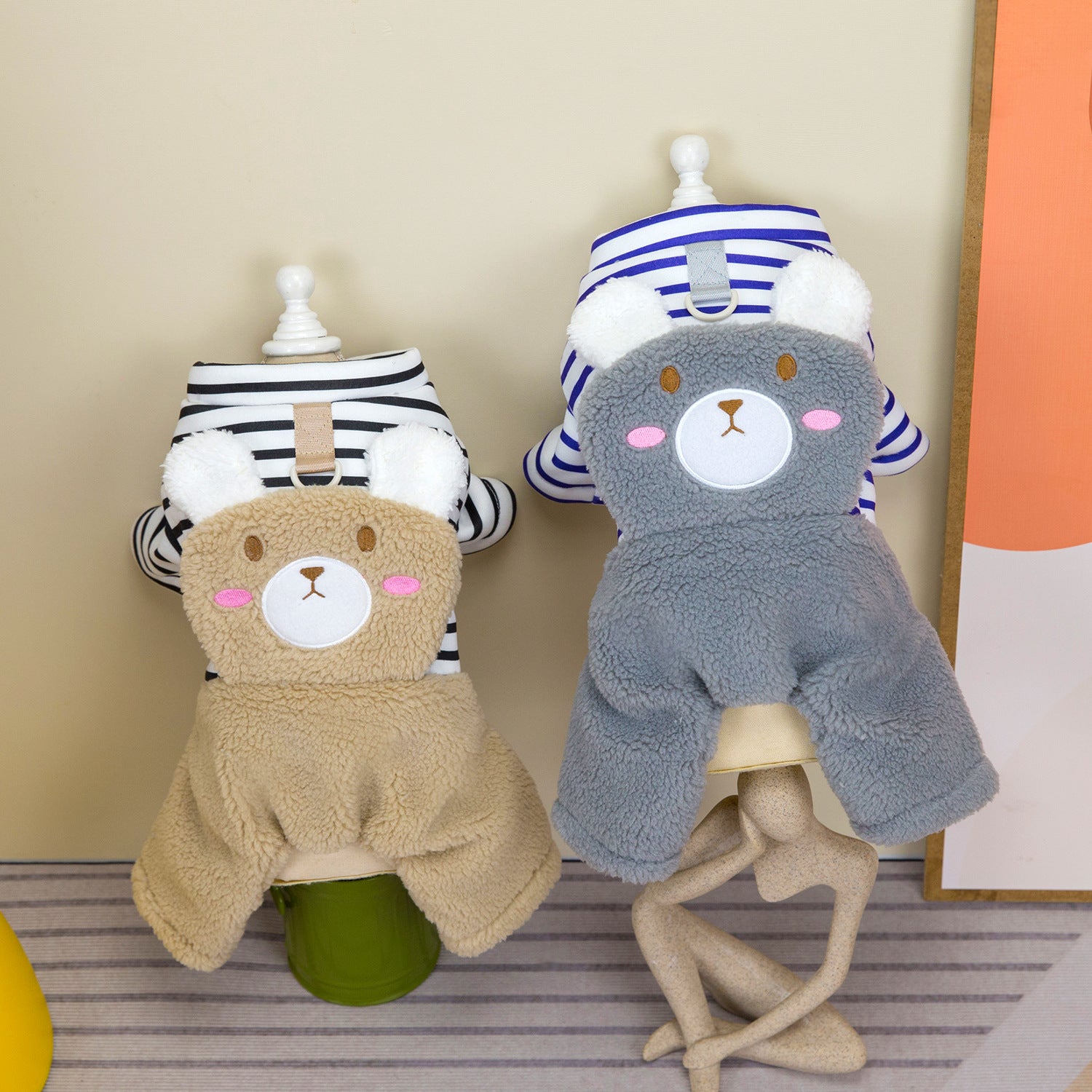 人気犬の服ペットの服小型犬や猫は秋と冬に着用することができます暖かく快適なストライプ刺繍クマ四本足の綿のコート