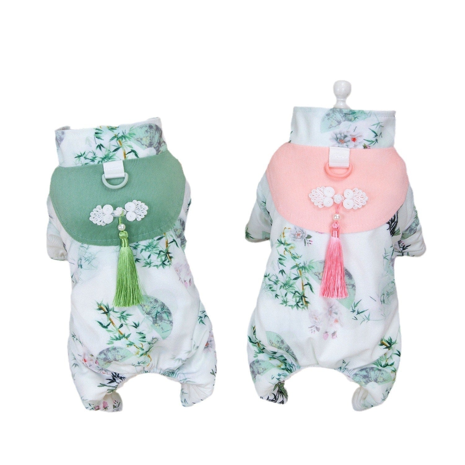 人気犬の服ペットの服小型犬や猫は秋と冬の暖かく快適な中国風の四本足の綿のコートを着ることができます