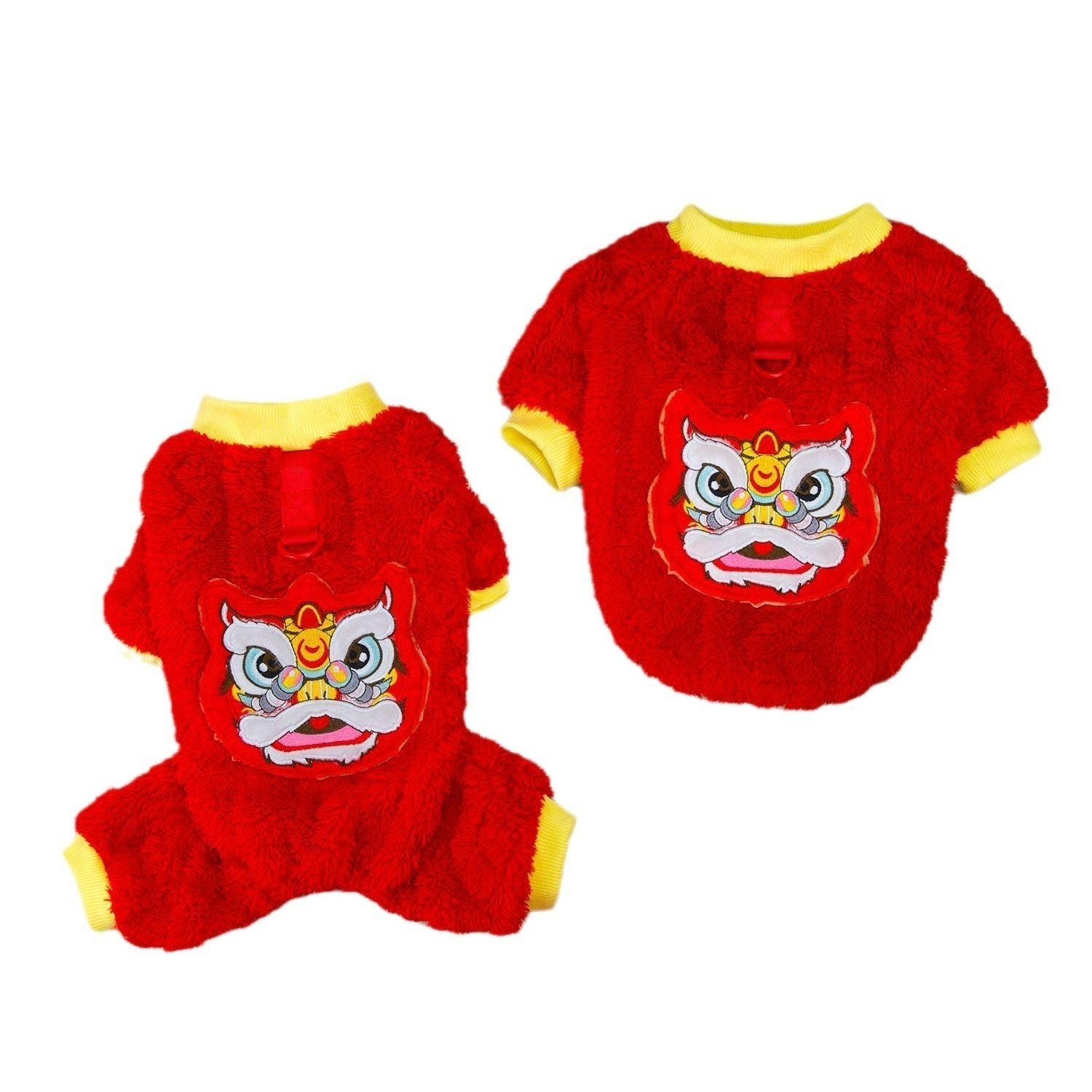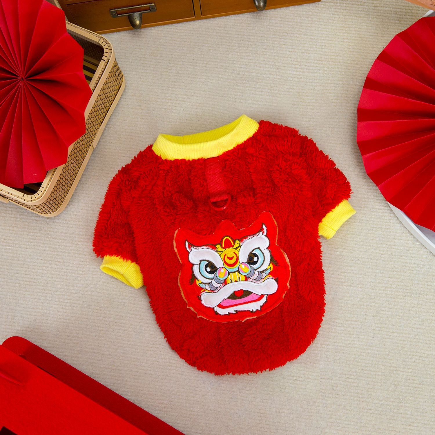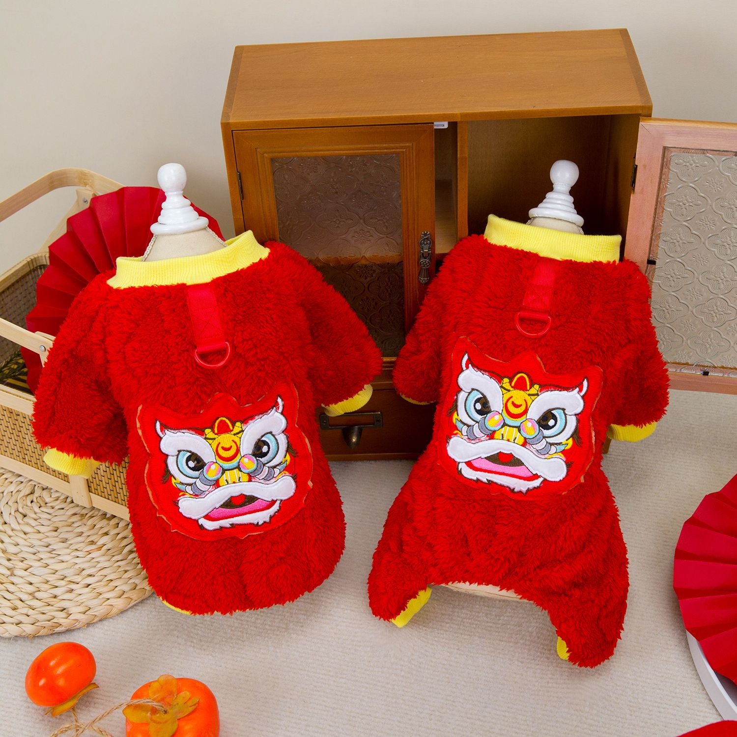 人気犬の服ペットの服小型犬猫は秋と冬に着用することができます暖かく快適な新年獅子舞フリースジャケット