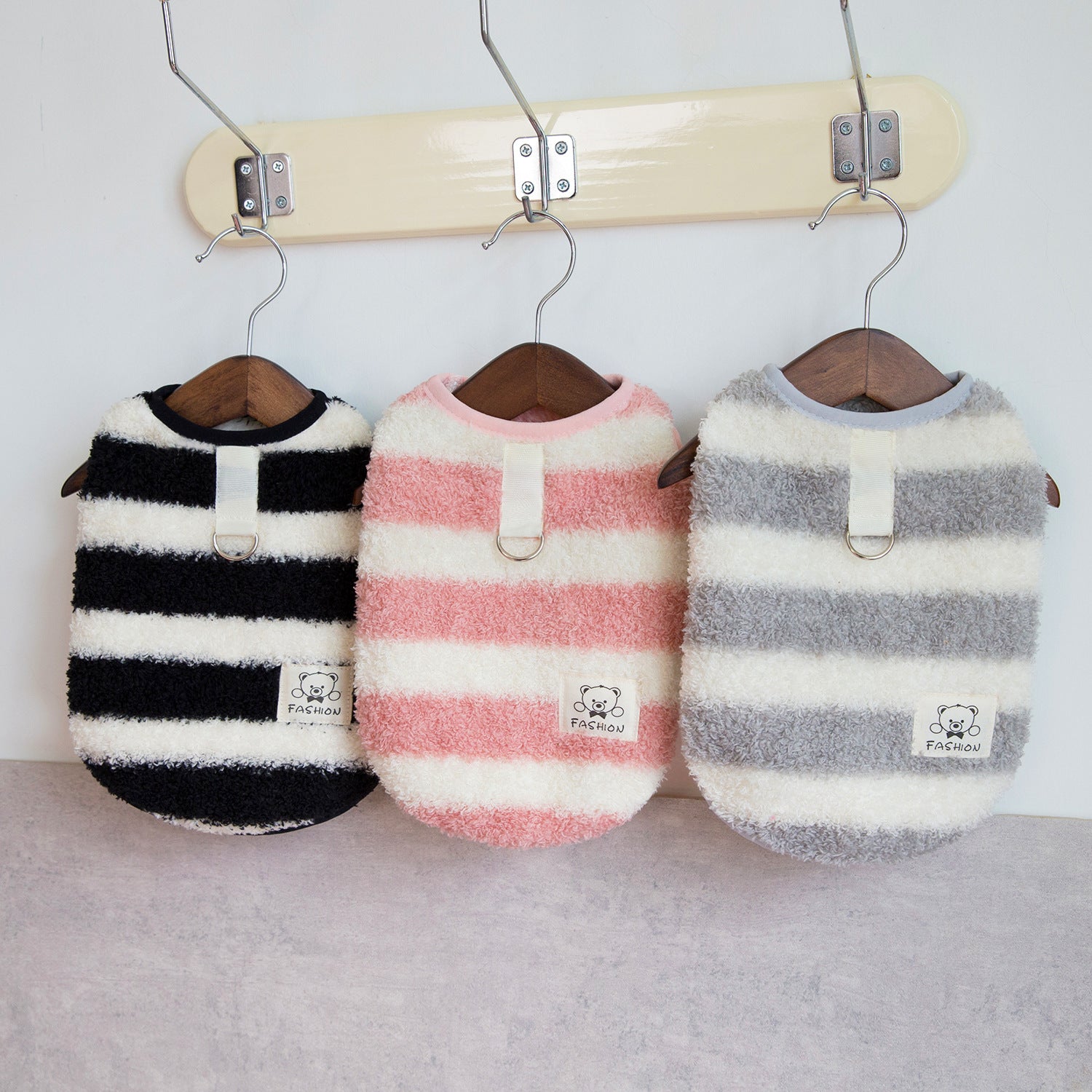 人気犬の服ペット服小型犬や猫が着ることができる秋と冬の暖かく快適な大きなストライプフリースのベスト