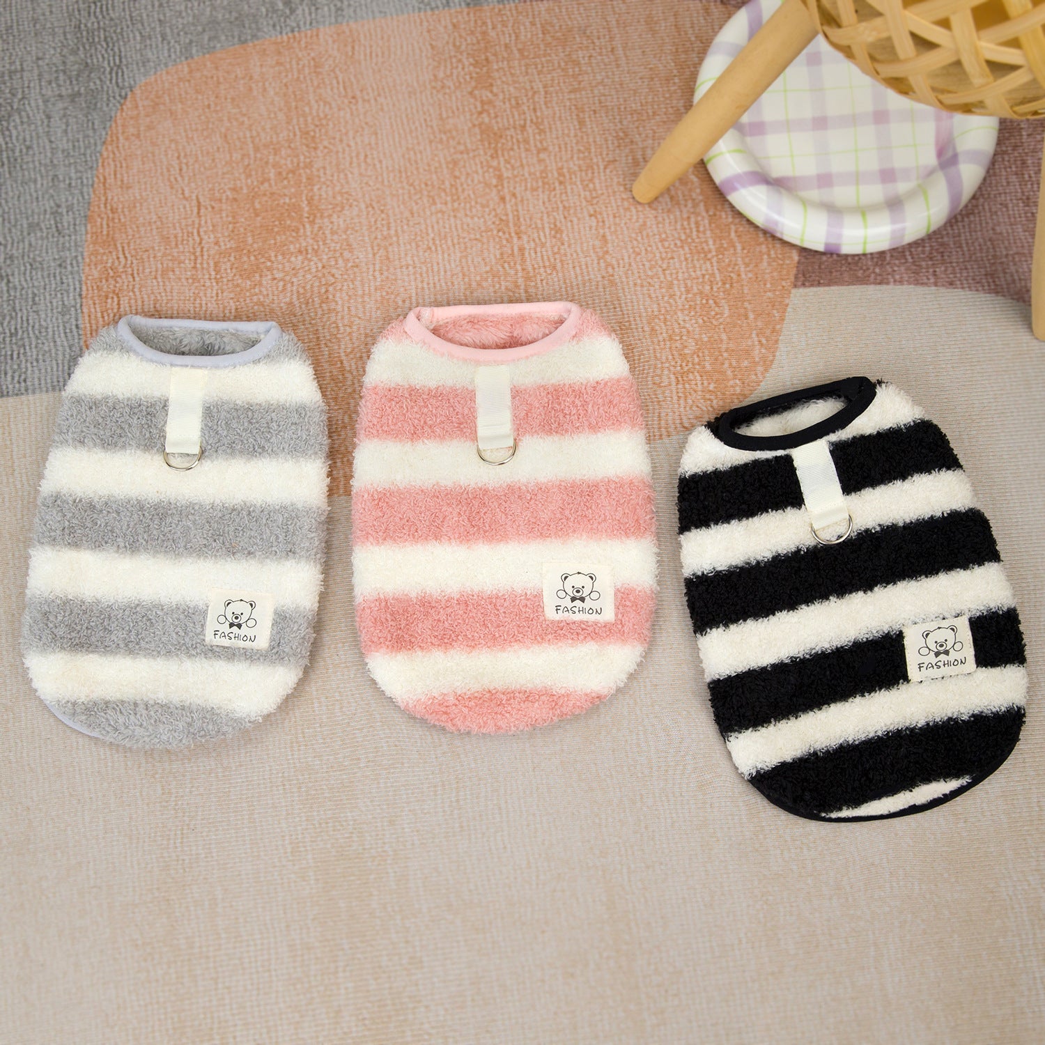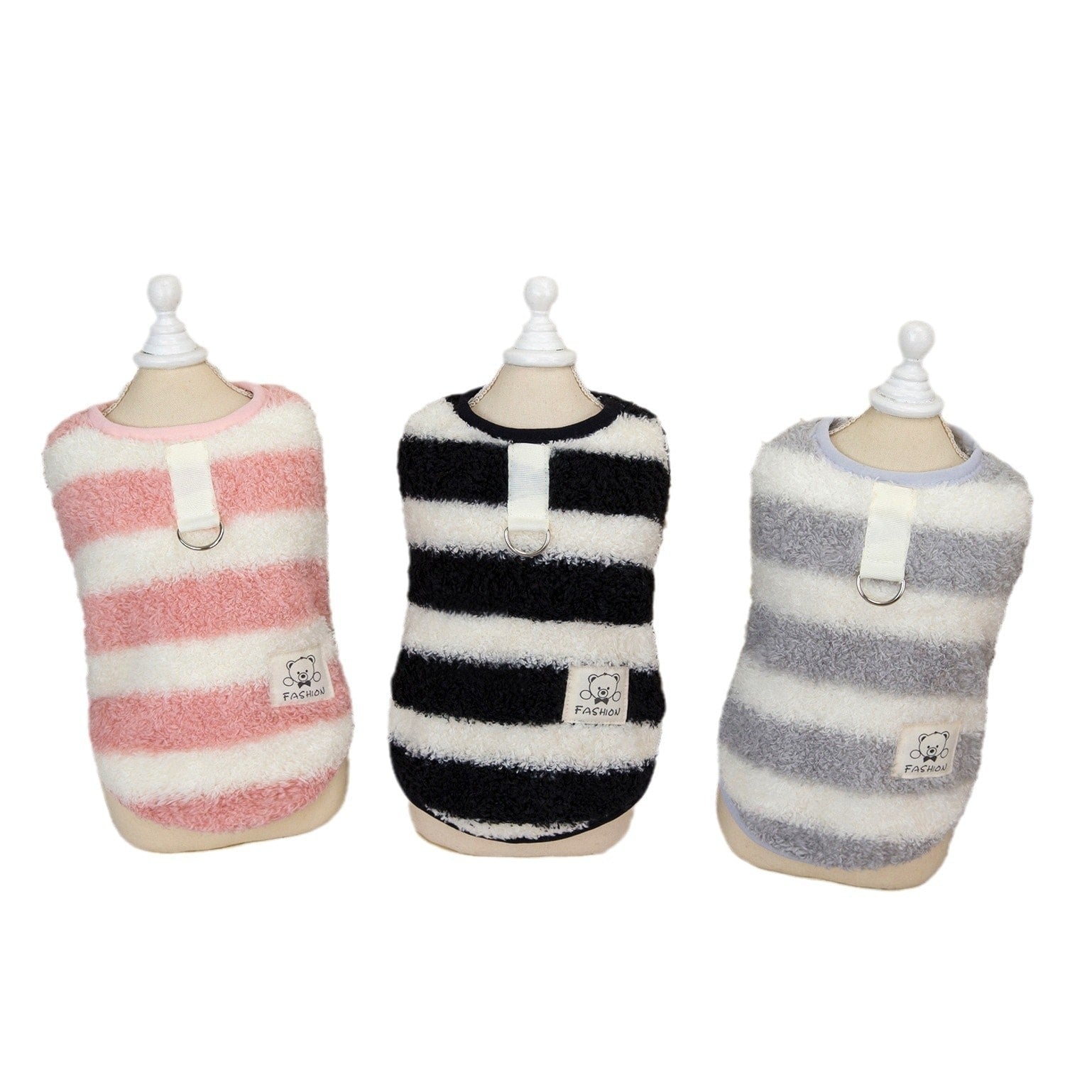 人気犬の服ペット服小型犬や猫が着ることができる秋と冬の暖かく快適な大きなストライプフリースのベスト