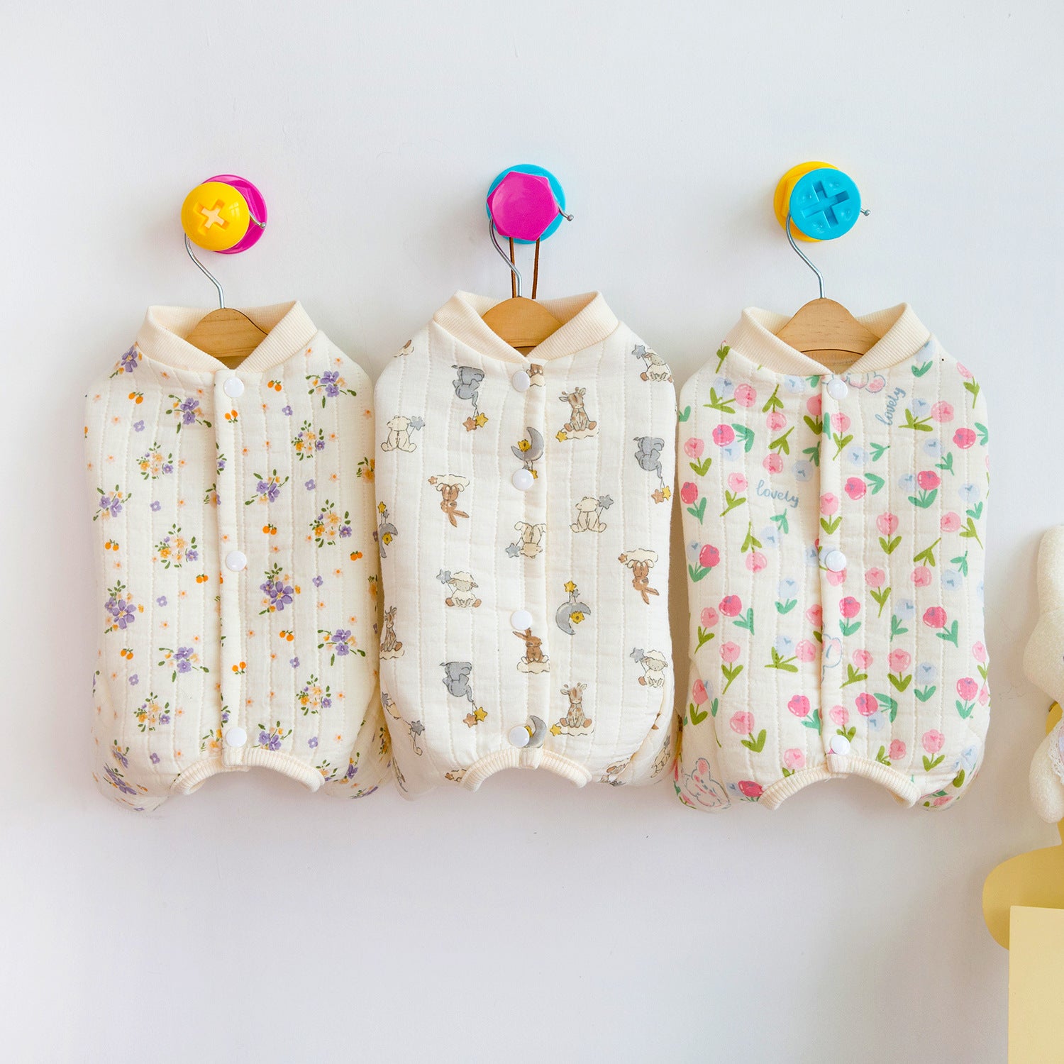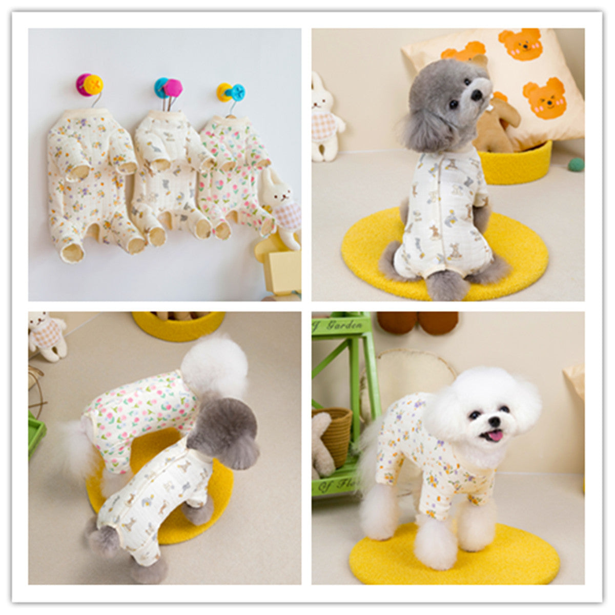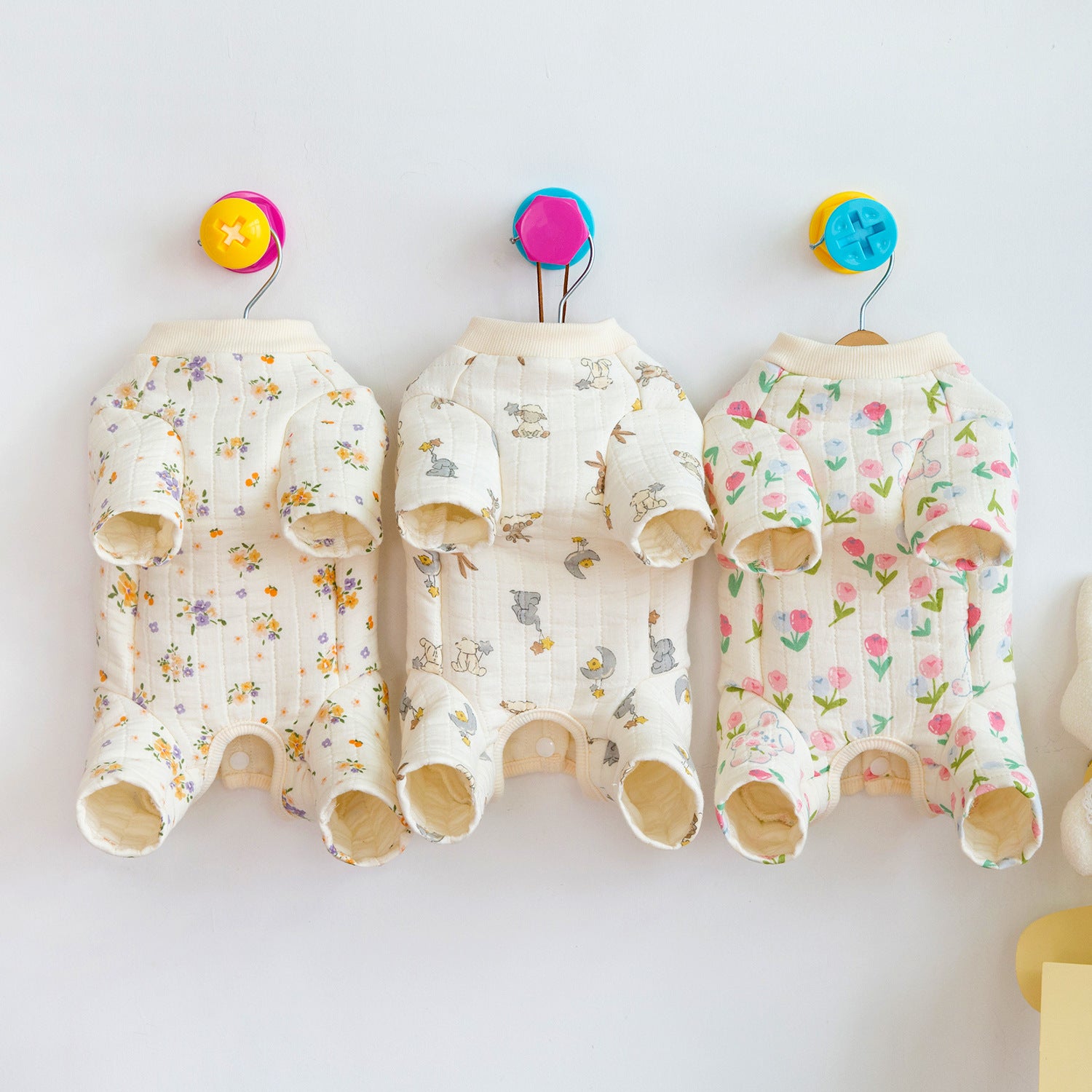 人気犬の服ペット服小型犬や猫は秋と冬の暖かく快適な二重層綿ガーゼ腹のスーツを着ることができます