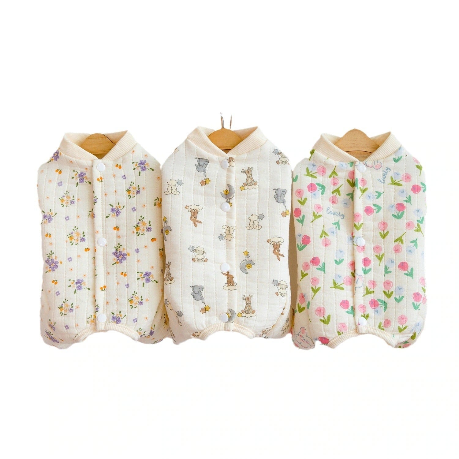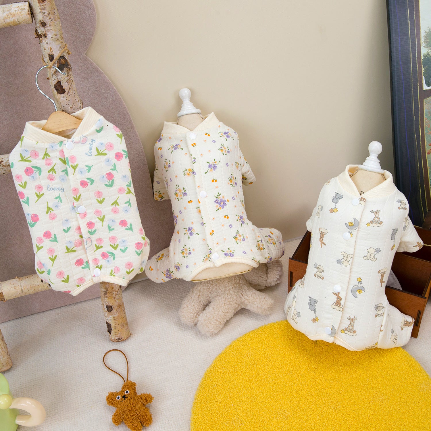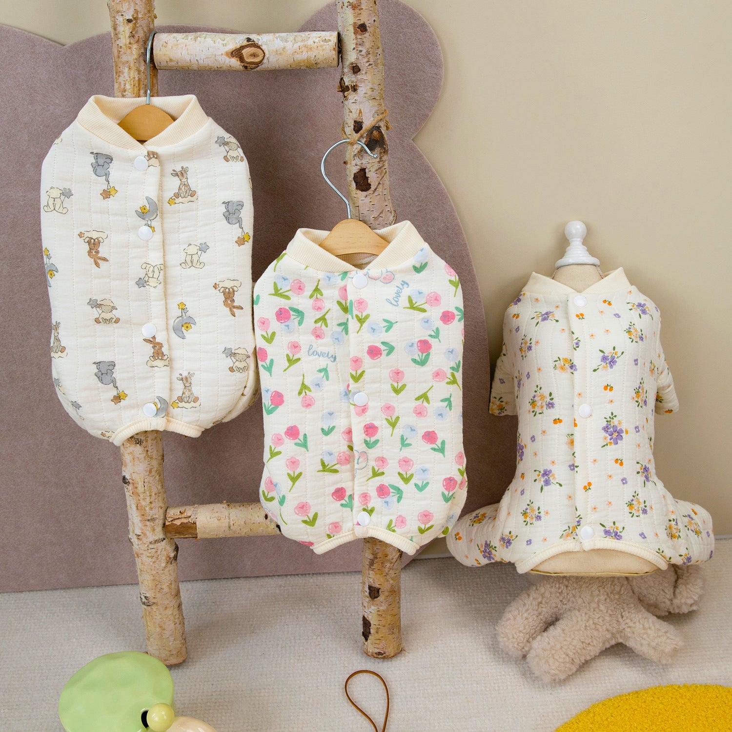 人気犬の服ペット服小型犬や猫は秋と冬の暖かく快適な二重層綿ガーゼ腹のスーツを着ることができます