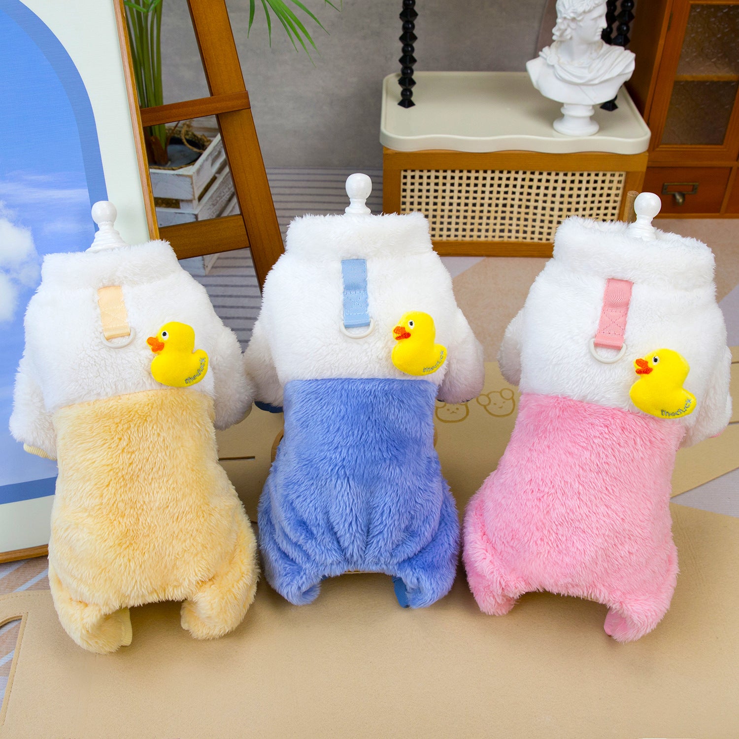 人気犬の服ペット服小型犬猫が着ることができる秋と冬の新しい暖かい快適なアヒル4脚フリースジャケット