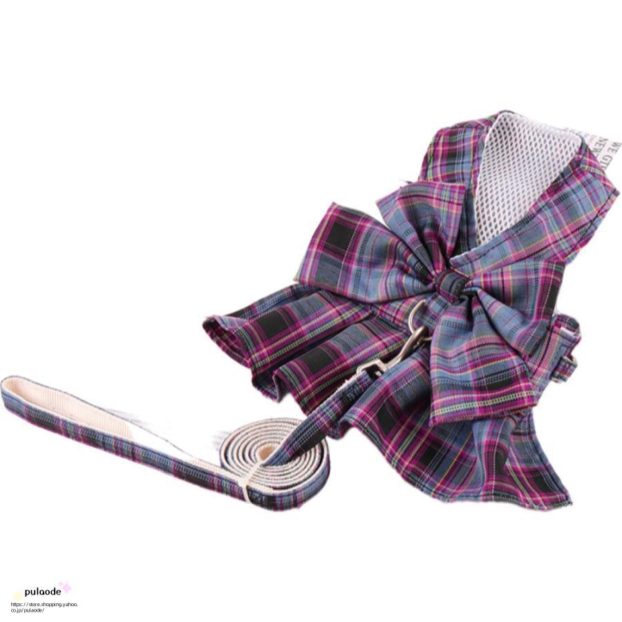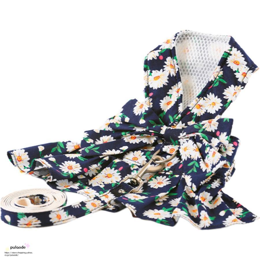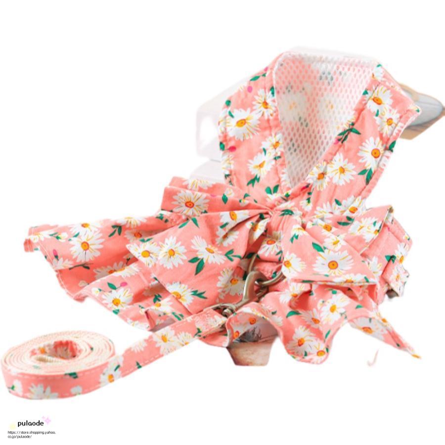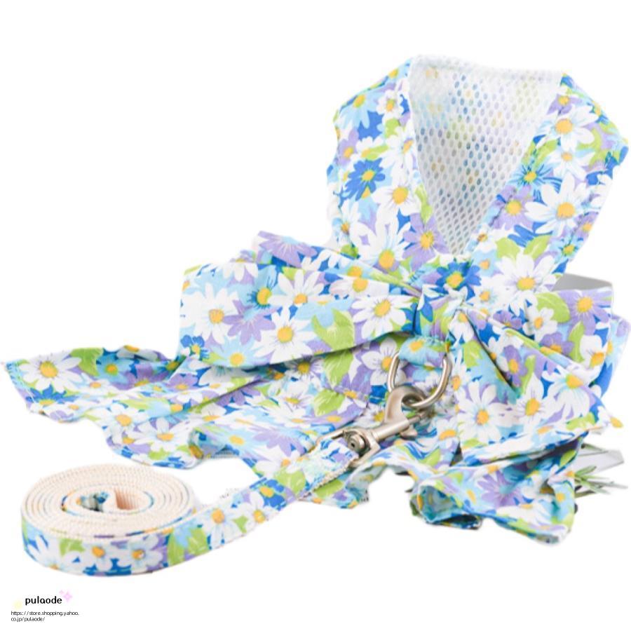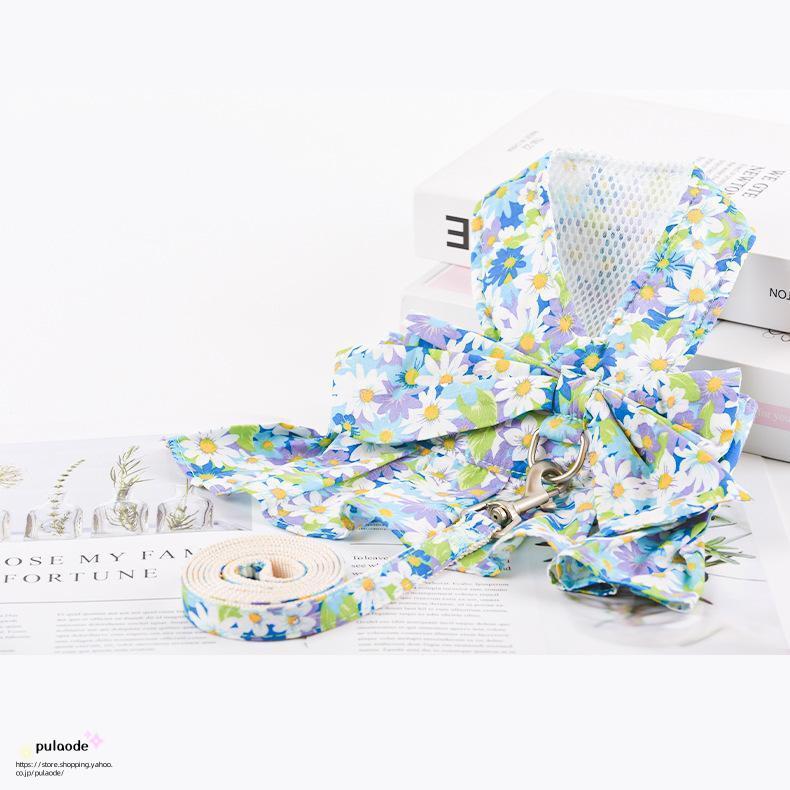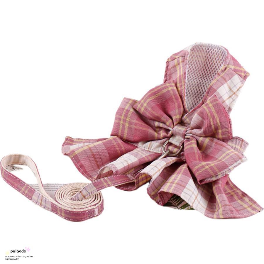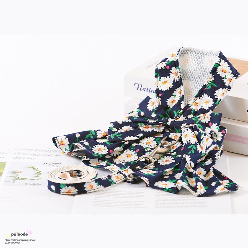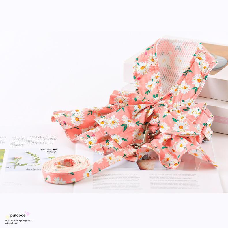 今も人気!ハーネス リード 2点セット ペット用品 ベストハーネス 犬用 猫用 小型犬 ワンピース風 ドッグ リーシュ 胴輪 散歩紐 牽引紐 平紐 花柄 チェッ