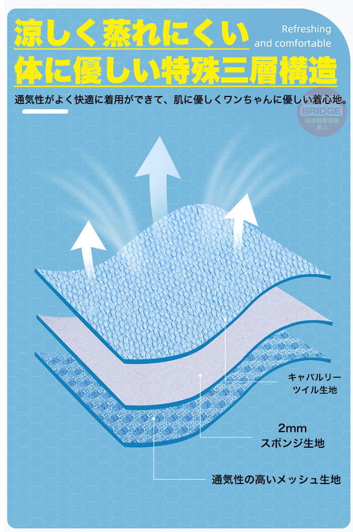 涼しく蒸れにくい体に優しい特殊三層構造仕様で快適に着用ができます。