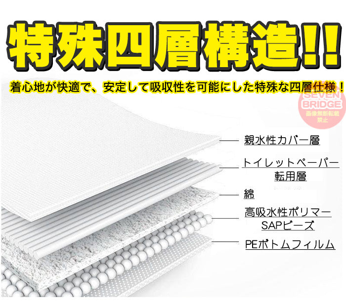 着心地が快適で、安定して吸収性を可能にした特殊な四層仕様!
