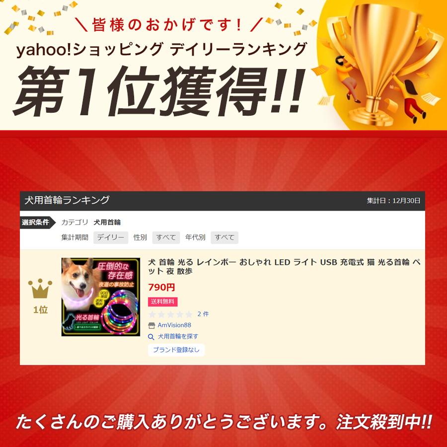 光る首輪 光る 充電式 散歩 首輪 LED おしゃれ 犬 夜 ペット レインボー 猫 USB ライト