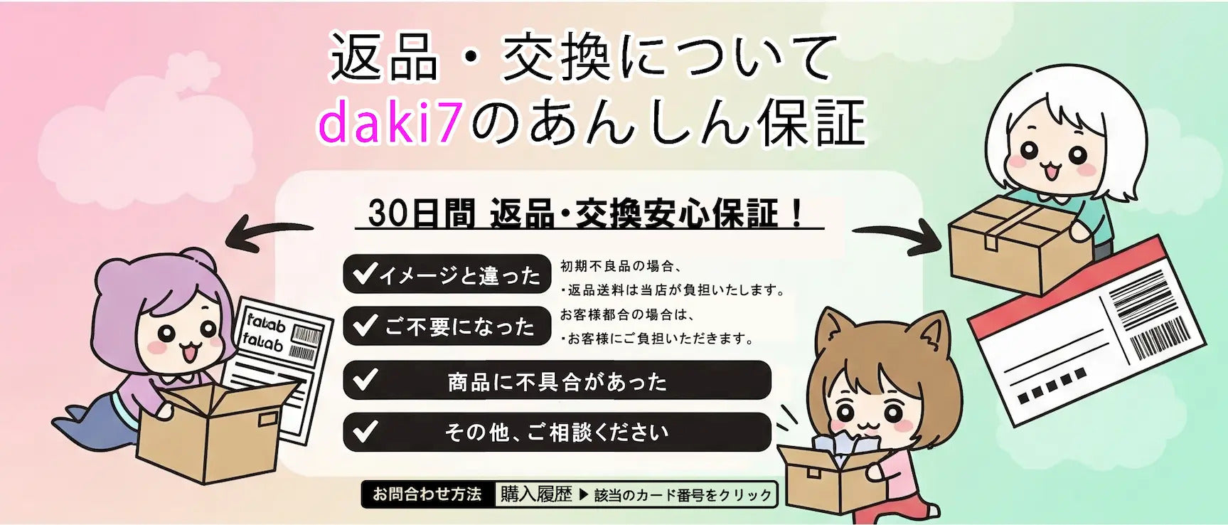 出荷前に全て検品を行っておりますが、万が一商品に不具合があった場合は、お問い合わせフォームまたはメールよりご連絡頂けます様お願い申し上げます。速やかに対応致しますのでご安心ください。