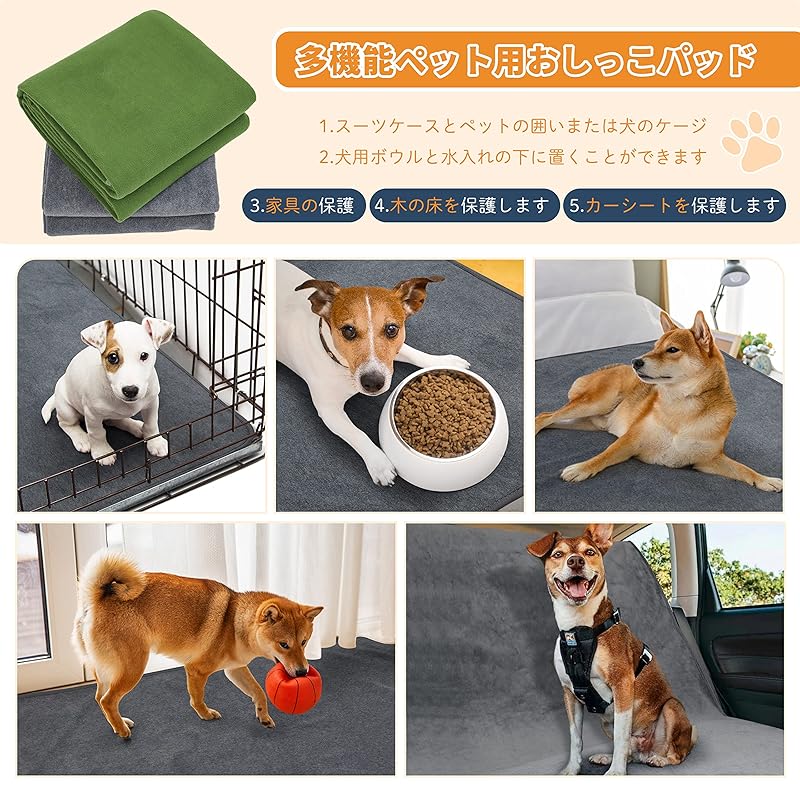 【即納】【2枚セット】犬 猫用洗えるペットシーツ 繰り返し使える犬用おしっこマット ペットマット 漏れにくさ 噛み耐性 速乾 消臭 介護 制菌 超吸収 (41*61cm, グレー)