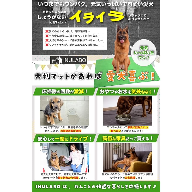 【即納】INULABO(イヌラボ) 洗える ペットシーツ 特大 おしっこマット 防水 床保護 ペットマット 丸ごと洗える 【わんこが思いっきり遊べる】 (165×122cm(1枚), グリーン)