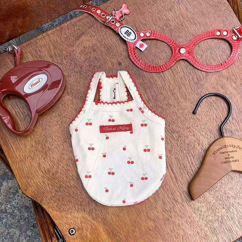 可愛いチェリー春夏キャミソール犬の服ベスト通気性薄いペットの猫の服クマのテディボミより