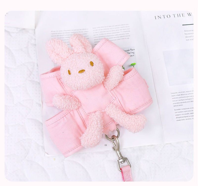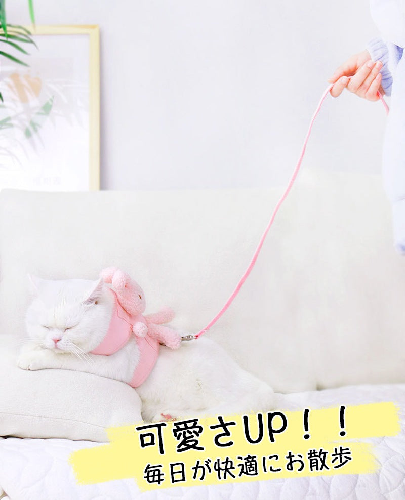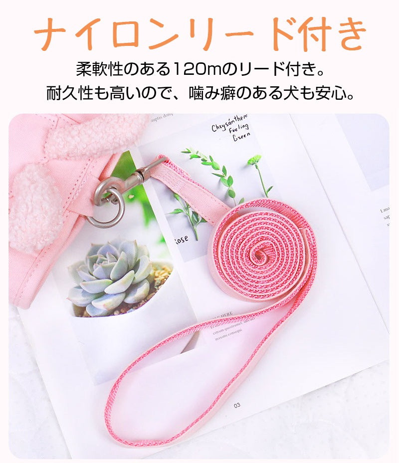 可愛い犬服のポコウサギのぬいぐるみ犬服 カラー3色 犬服 ハーネス 一体型 リード ハーネス調整可能 着やすい 散歩 子犬 猫用ペット用品 小動物用 落ちない 安全素材で作り お散歩