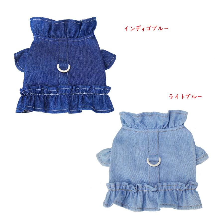★ 首と胴周りのフリフリギャザーがCuteな♪小型犬用デニムドレスハーネスです。