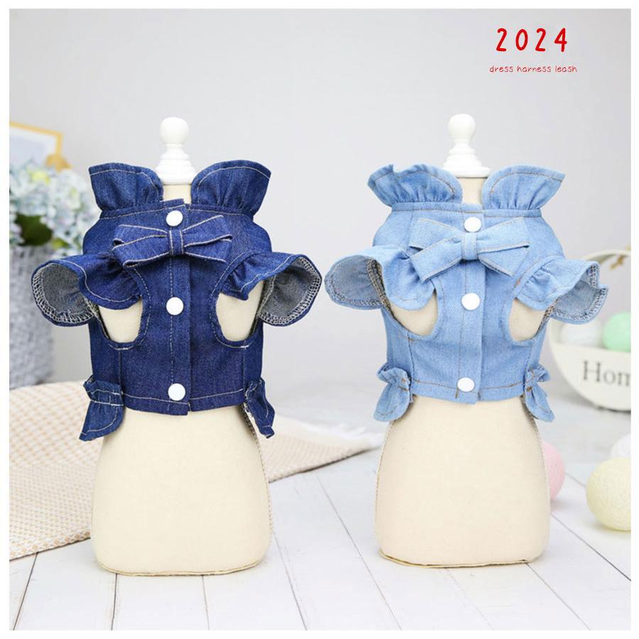 夏 ハーネス 犬服ワンピース 犬 犬用ハーネス 春 犬服 春夏ドレス デニム ワンピース おしゃれ リボン 犬ハーネス 犬用ハーネス 小型犬 犬のハーネス 犬 服