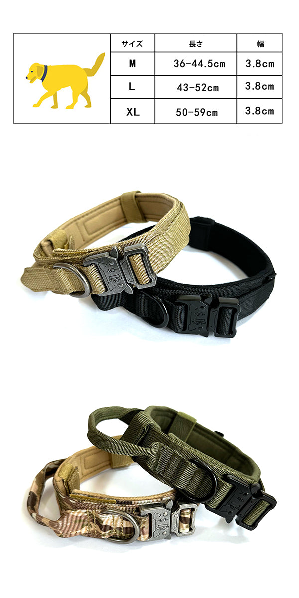 大型犬 軍用 犬首輪 小型犬 ペット 中型犬 首輪 犬 紐 丈夫 犬用 イヌ いぬ ミリタリー 犬の首輪 犬用首輪 軍物 迷彩 リード アクセサリー