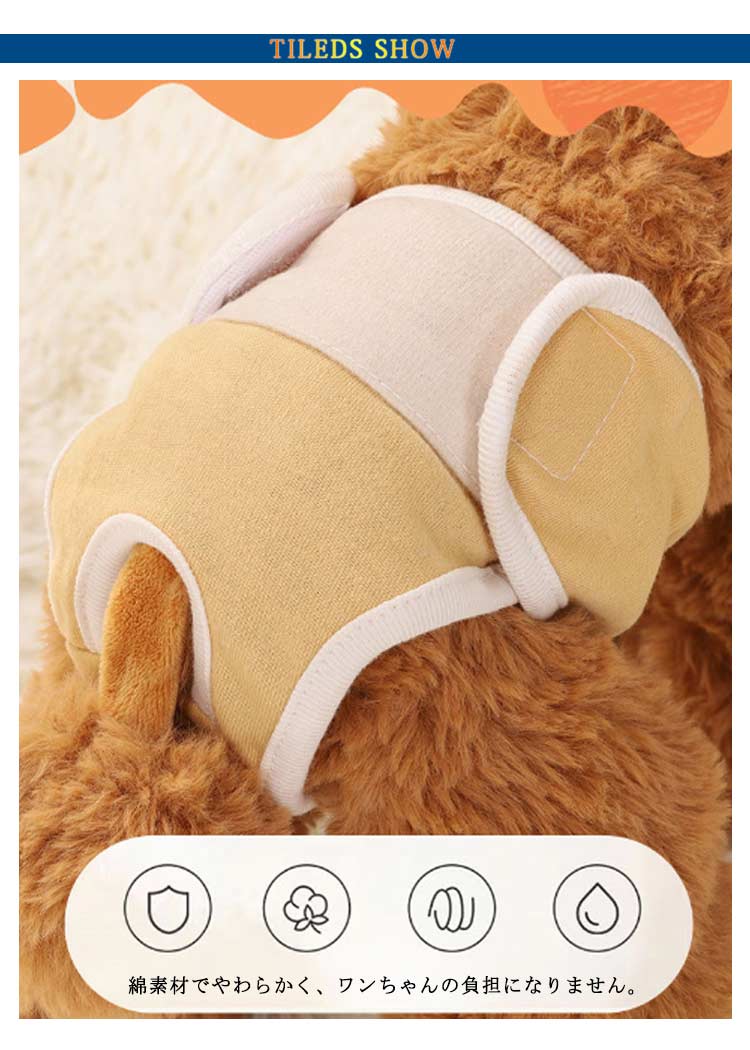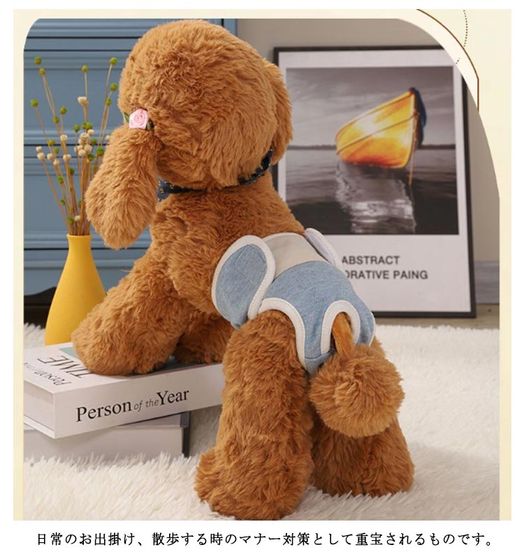 犬向けのおむつカバー 綿素材でやわらかく、ワンちゃんの負担になりません。 高吸収性のあるポリエステルメッシュの内側層と防水性の外側層で作られており、ソファや床に生理の血漏れや損傷を防止する。 愛犬のウエストに合わせて長さを簡単に調整できます。マジックテープ仕様で、脱着も便利です。 使い捨ての犬用おむつよりも経済的で環境にやさしい。おむつやマナーパットを替えるのもらくちん! 日常のお出掛け、散歩する時のマナー対策として重宝されるものです。 | |
