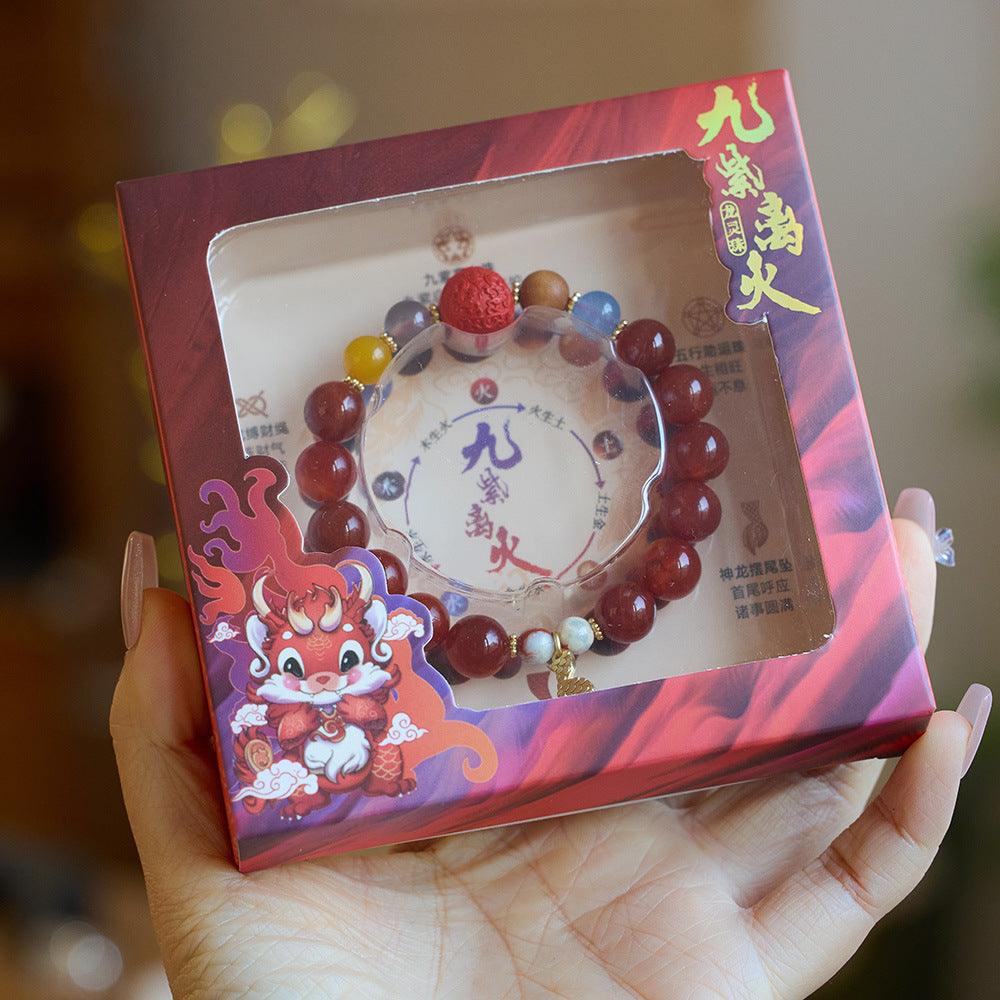 寺庙同款天然龙纹玛瑙手链九紫离火龙年生肖本命年高级感手串批发