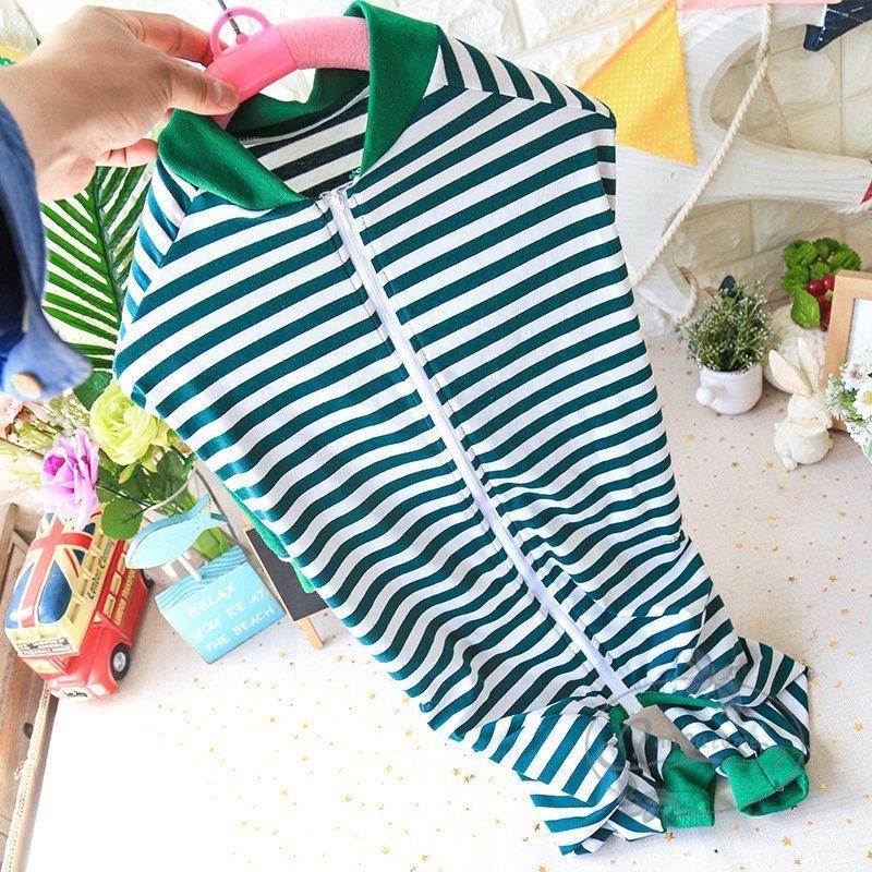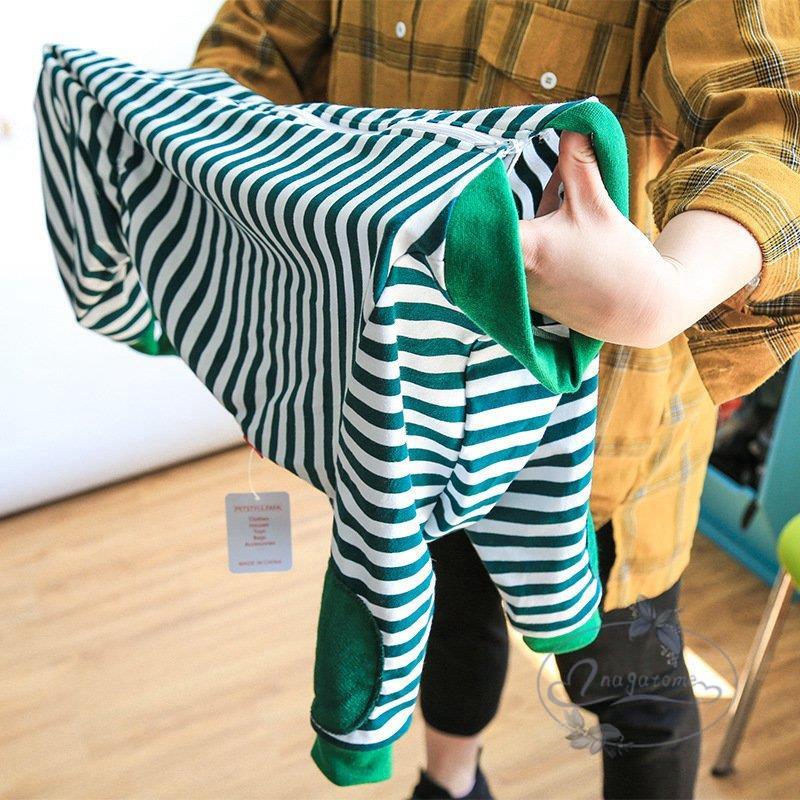 【大型犬向け】【背面ジッパータイプで着用ボーダーロンパース?つなぎ?カバーオール?パジャマ】です。
