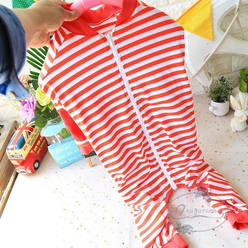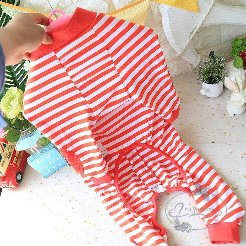 工ガ割-大型犬向け 犬服 ドッグウェア つなぎ カバーオール 背面ジッパータイプ ボーダーロンパース つなぎ パジャマ 抜け毛防止 部屋着 ペット服