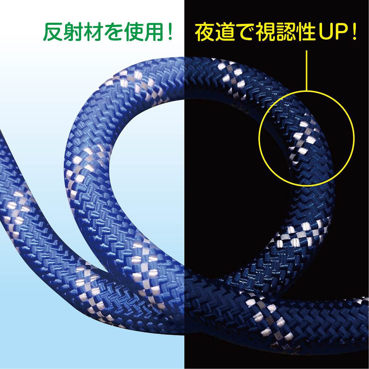ロープの素材の中に反射材を使用しているので、夜道も安心して散歩できます。