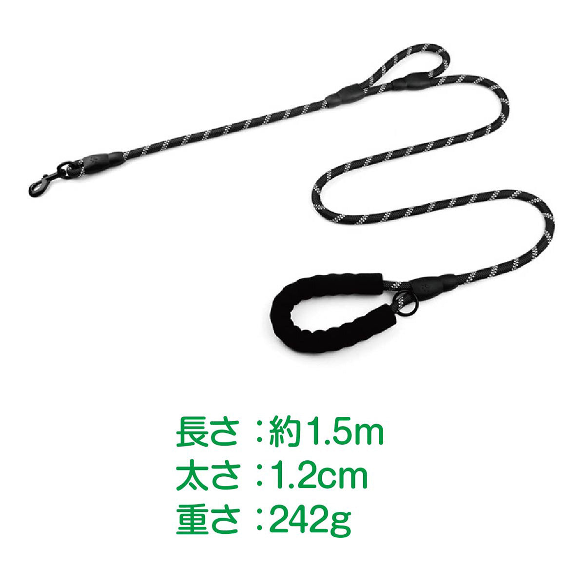 持ちやすい ロープ いぬ 太さ1.2cm かわいい 1.5m 犬 大型犬 反射材付き リード イヌ 犬用 丈夫 中型犬 小型犬 pet-lead02