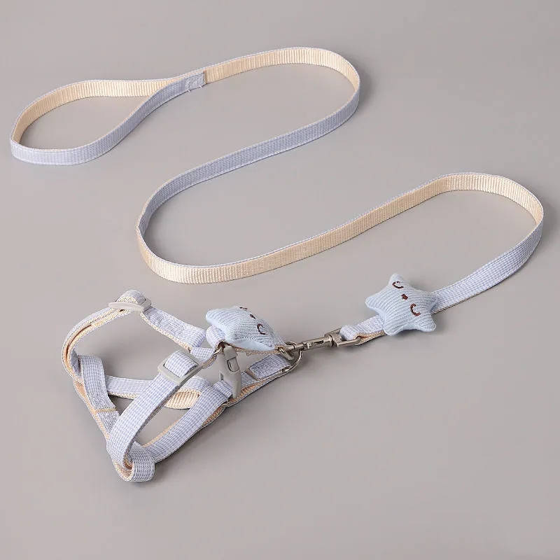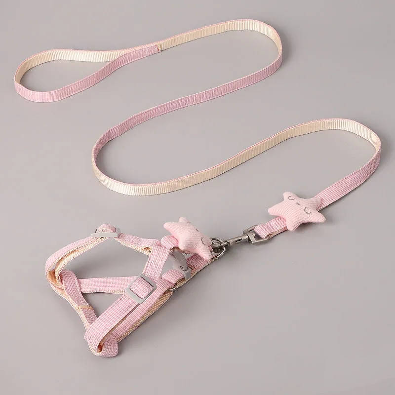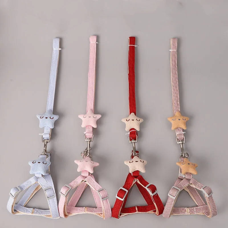 数量限定品小型犬 リードセット 猫用ハーネス 抜けない リーシュ 胴輪 ねこ用 胸当て ベスト ネコ用 キャット お出掛け 可愛い カラフル 星 お散歩 キャットウェア キャットウエア