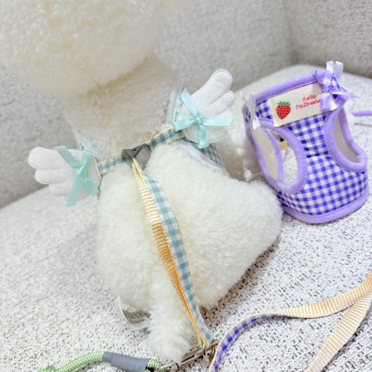 新しい犬の胸の背中のかわいいペットのベスト式の小型犬の牽引紐は犬のひもの翼のレースを散歩します