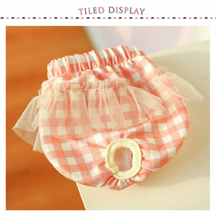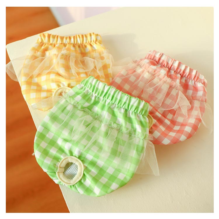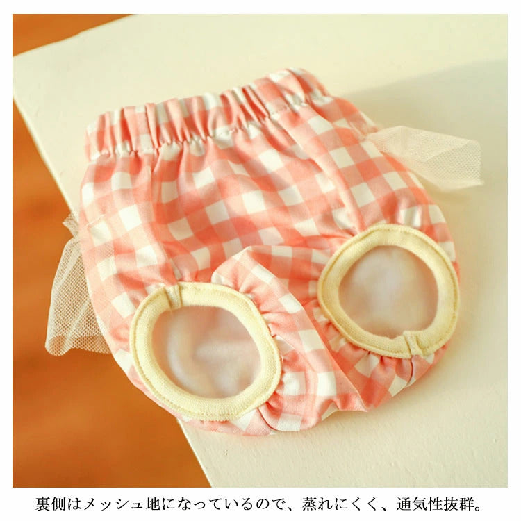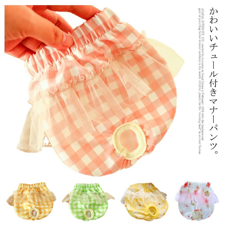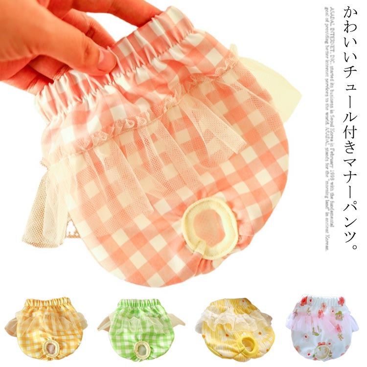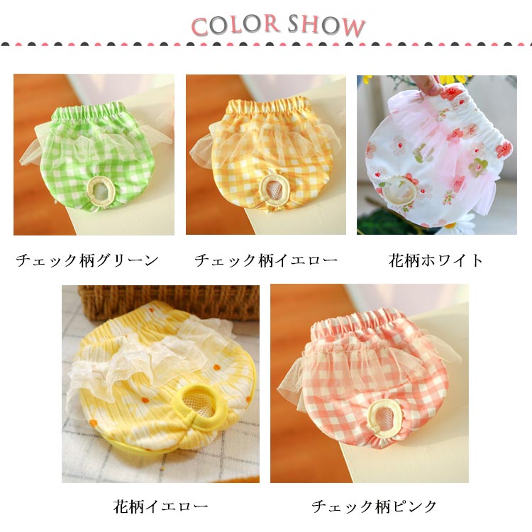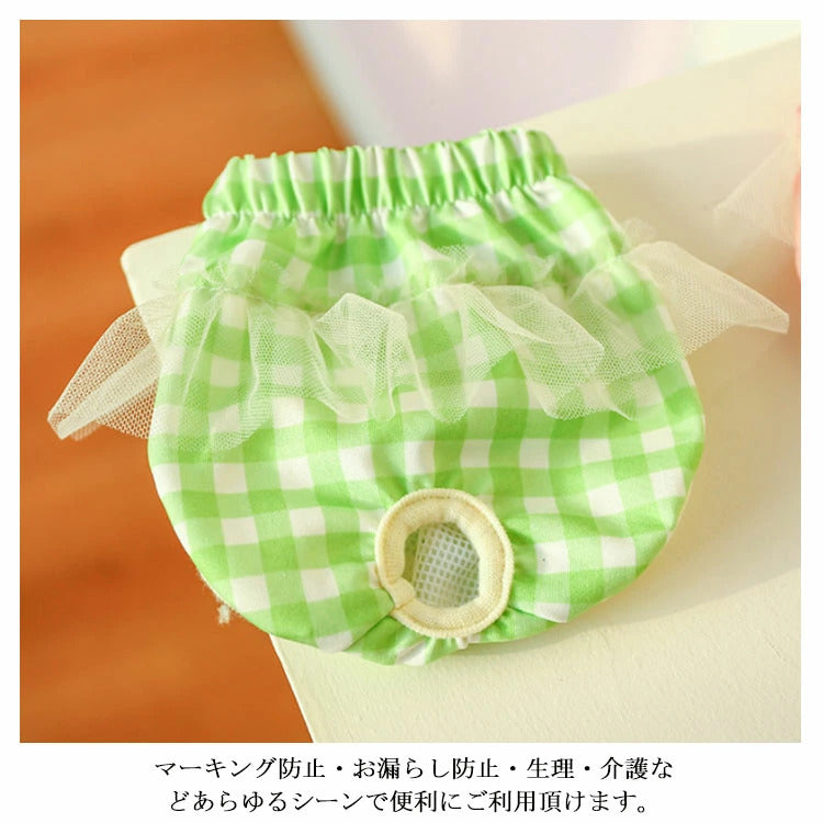 新作セール犬用 マナーパンツ 女の子用 サニタリパンツ 生理用パンツ 小型犬 中型犬 おむつカバー 月経パンツ マーキング防止 オシッコ対策 しつけ チェック柄 花柄 チュール付き 犬の服 ドッグウェ