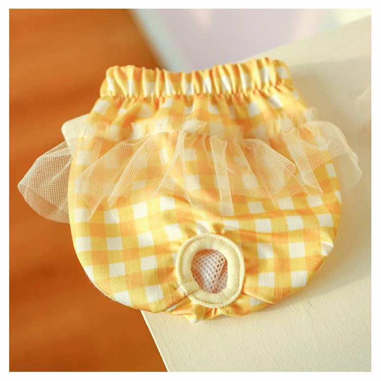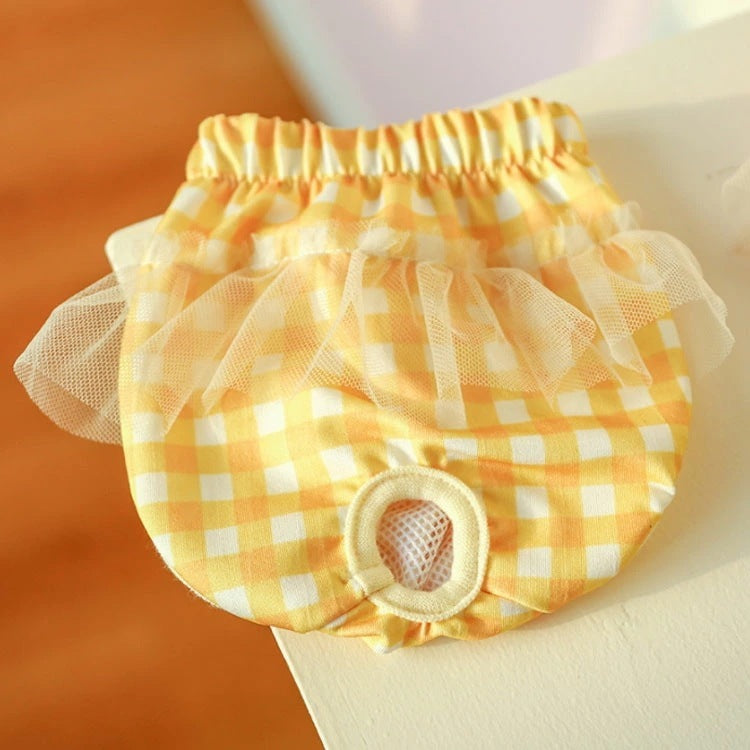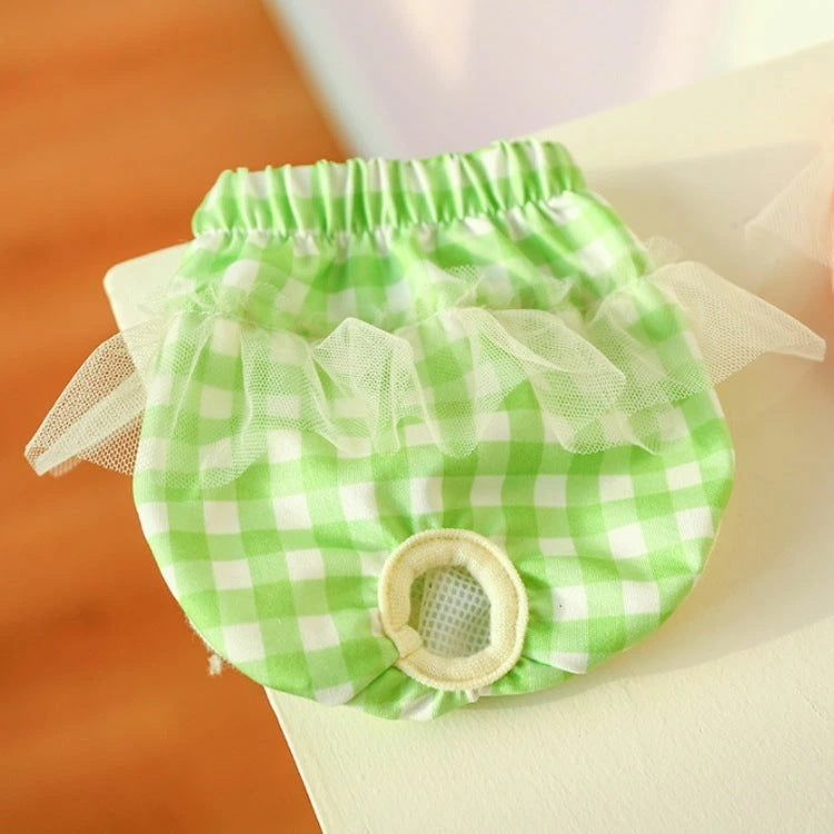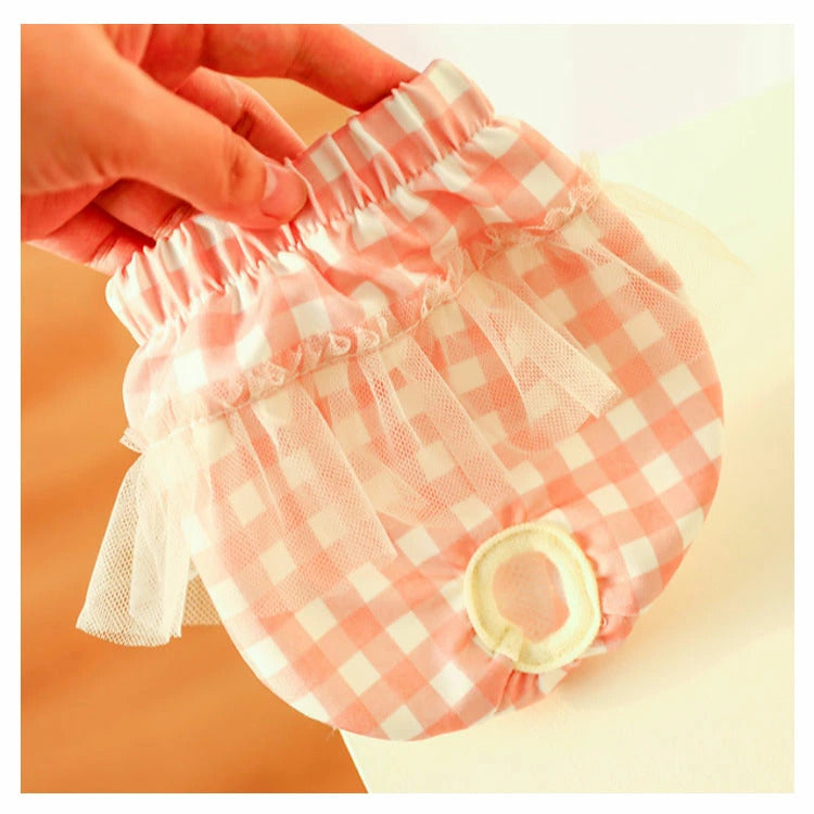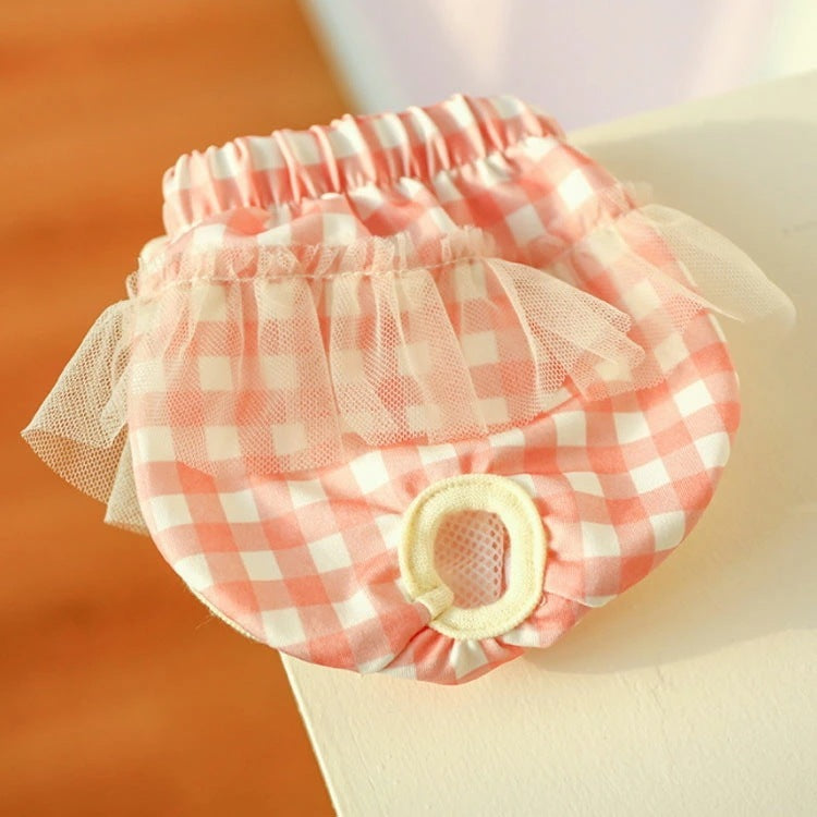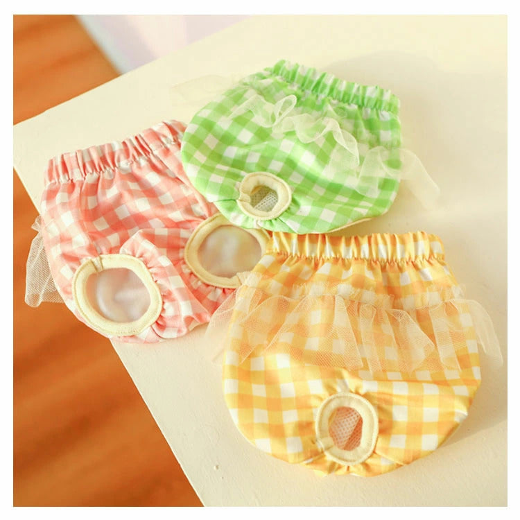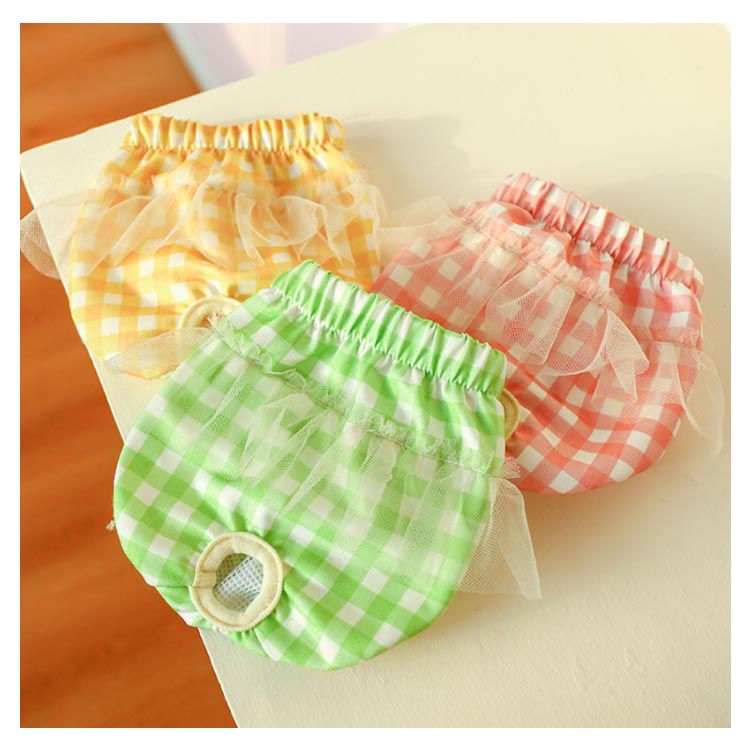 新作セール犬用 マナーパンツ 女の子用 サニタリパンツ 生理用パンツ 小型犬 中型犬 おむつカバー 月経パンツ マーキング防止 オシッコ対策 しつけ チェック柄 花柄 チュール付き 犬の服 ドッグウェ