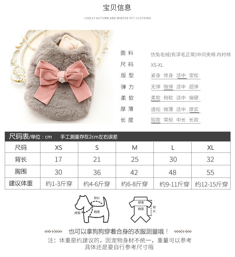 新作 ペットウェア 2色春秋冬ダウンコート犬の服ピンクかわいい猫犬のミルク猫の子犬マシュマロ小型犬クマちゃんペットテディ服