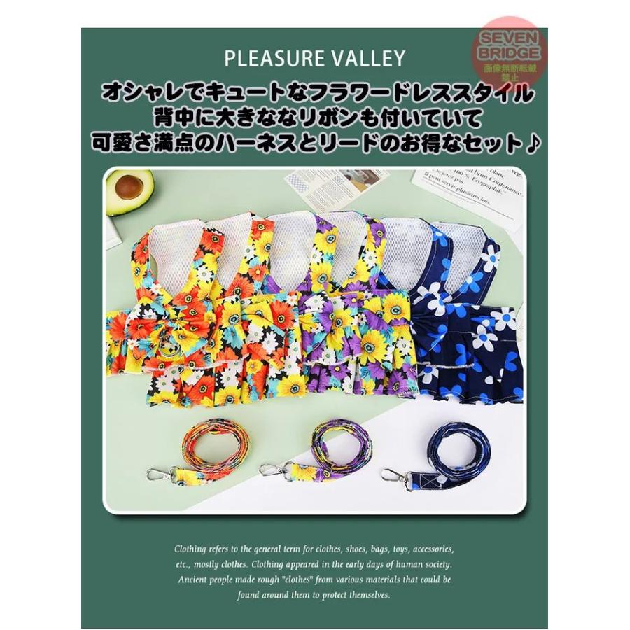 新商品プロモーション,数量限定 イテム犬 ハーネス リード 付 ドレス リボン フラワー ウェアハーネス ペット 服 ワンピース 胴輪 キャット ドッグイテム犬 ハーネス