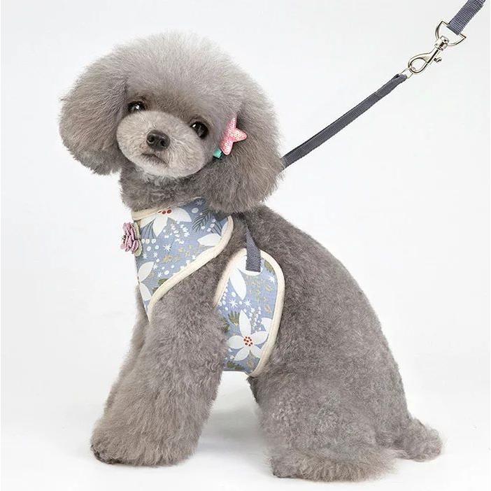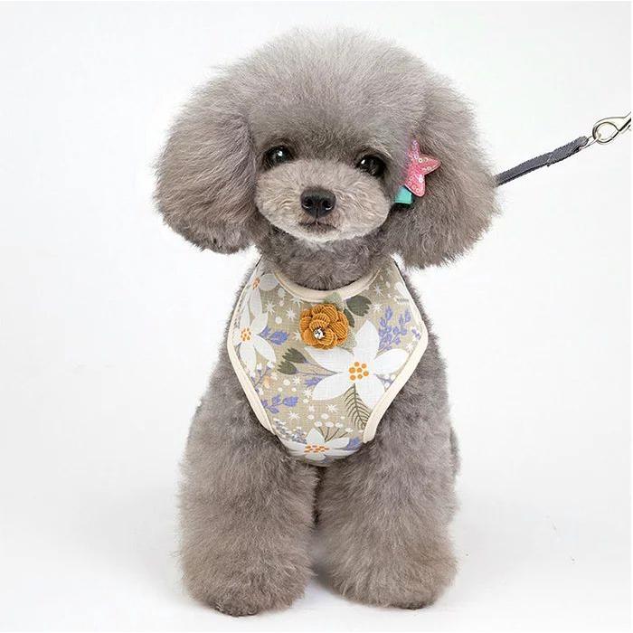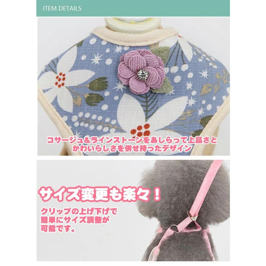 新商品プロモーション,数量限定 犬 ハーネス リード付 ペット 服 フラワー コサージュ ウェアハーネス 胴輪 キャット ドッグ メッシュ リボン ラインストーン犬 ハーネス