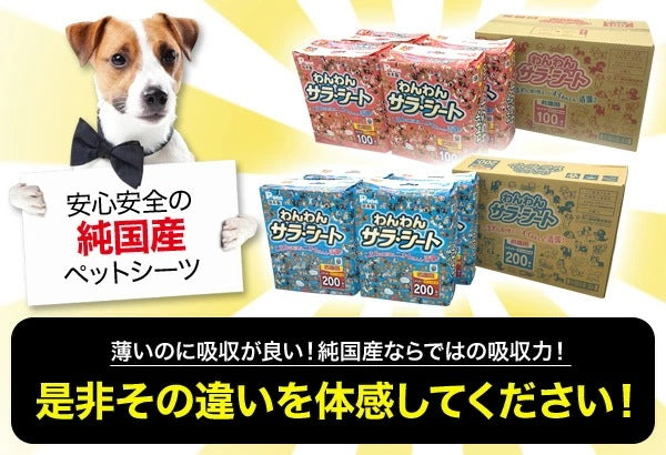 日本製 ペットシーツ わんわんサラシート 薄型(レギュラー800枚)(ワイド400枚) PWR-652/PWW-653