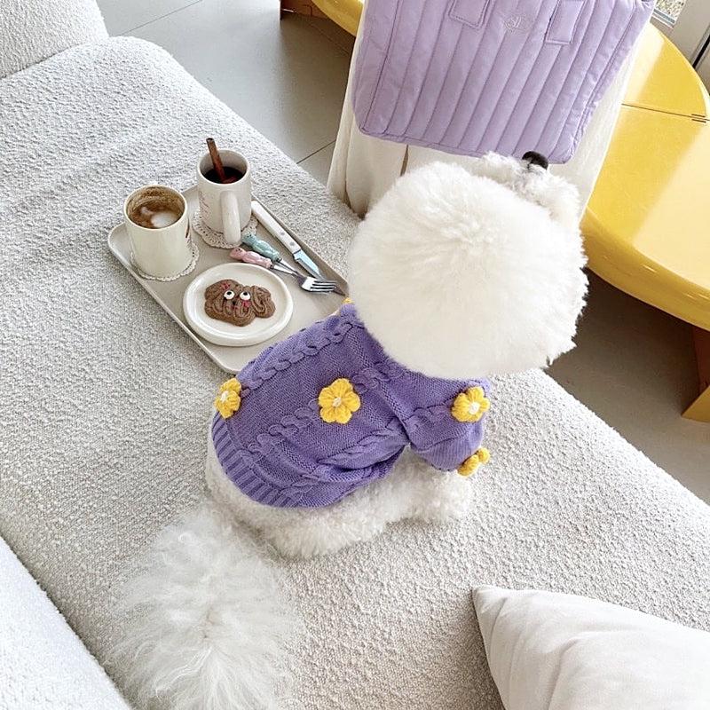 春と秋の犬服テディボーミペットのコキシナレビーベア愛らしい 犬猫服秋冬服 パープル セーター 可愛らしい 暖かい野球服 冬アウター