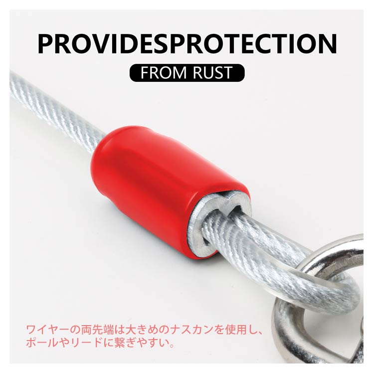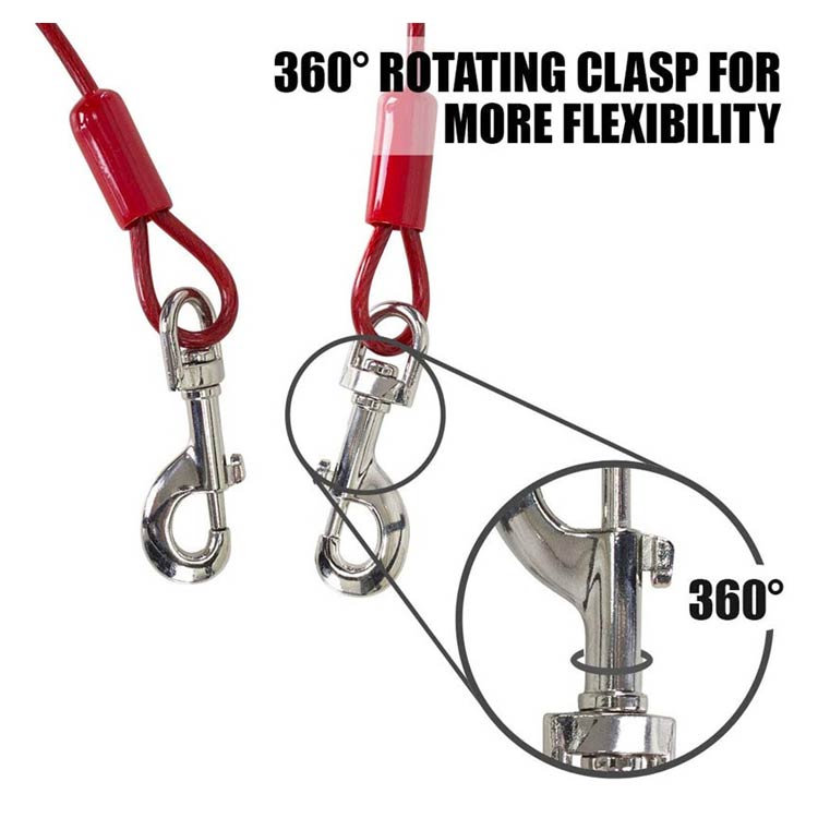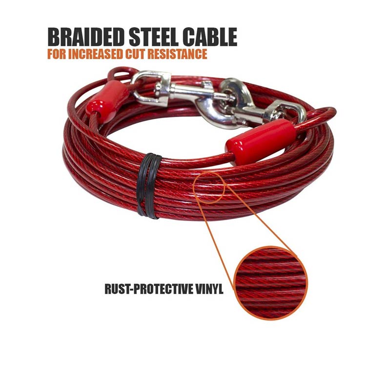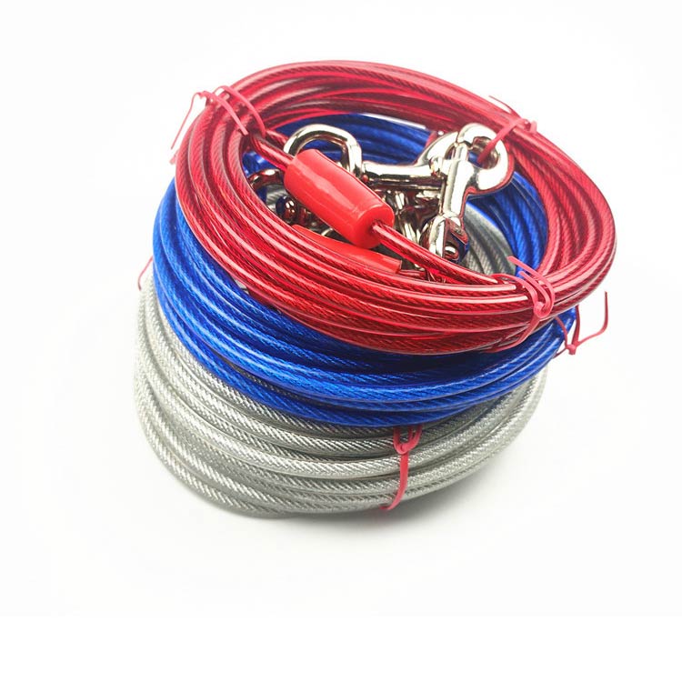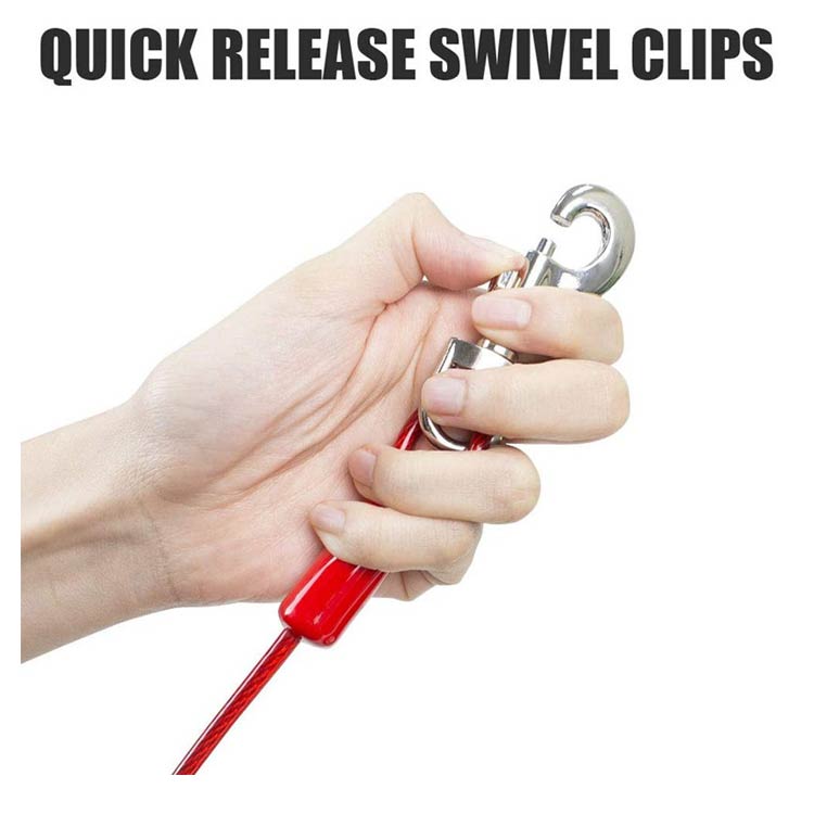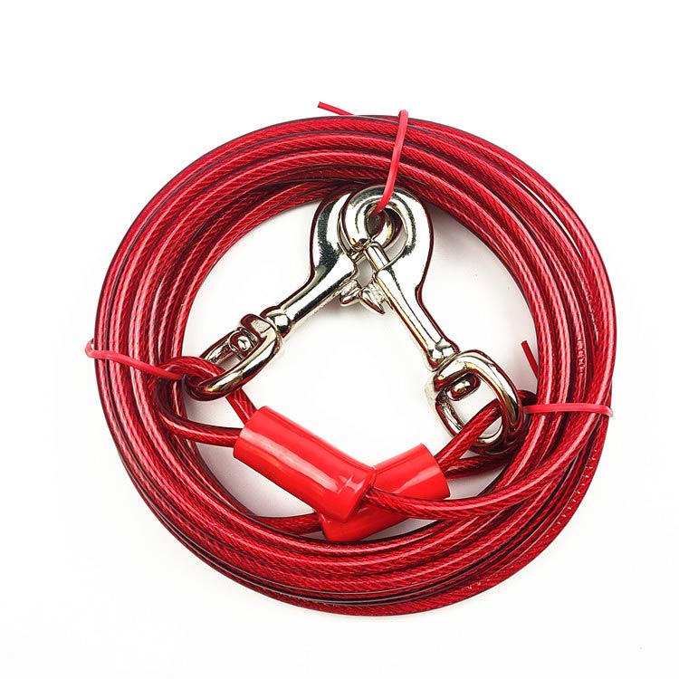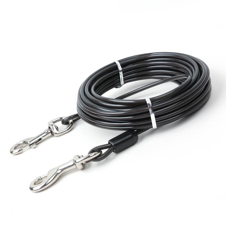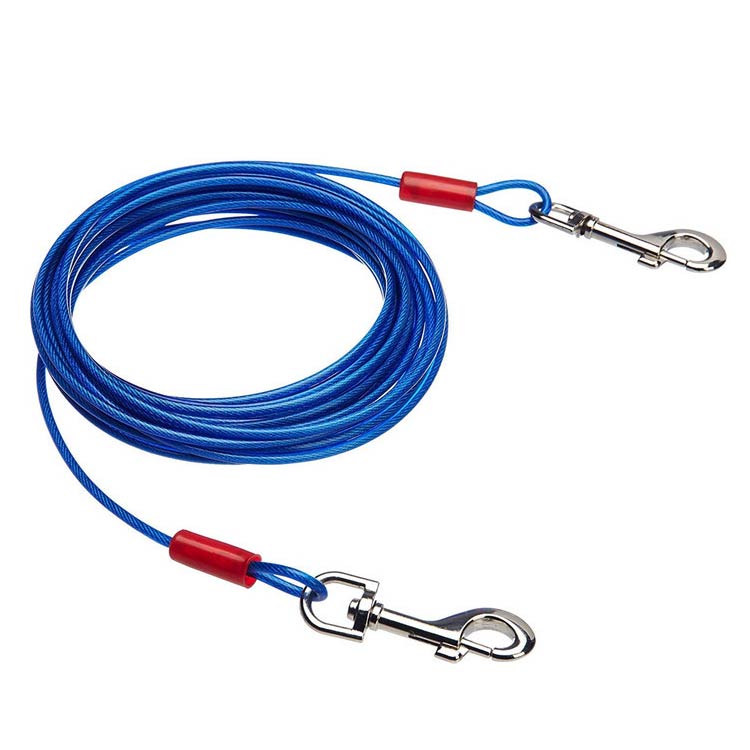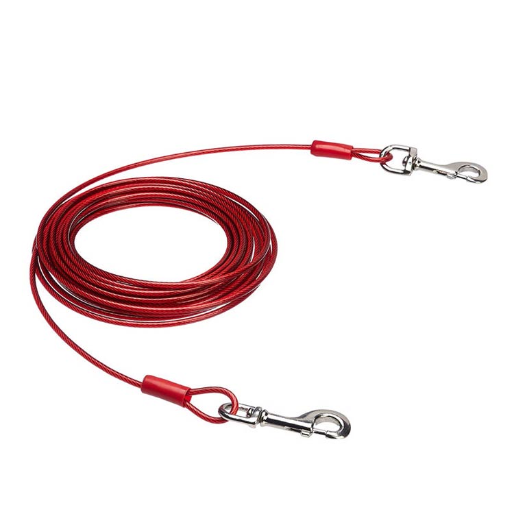 最長15m!高耐久性の切れないリード。両端には高品質の合金が固定される安全・安心設計。ワイヤーの両先端は大きめのナスカンを使用し、ポールやリードに繋ぎやすい。ワイヤーロープは、直径5mmのしっかりしたワイヤーを採用!ワイヤーの長さ3m、5m、6m、9m、10m、15mからチョイス可能。