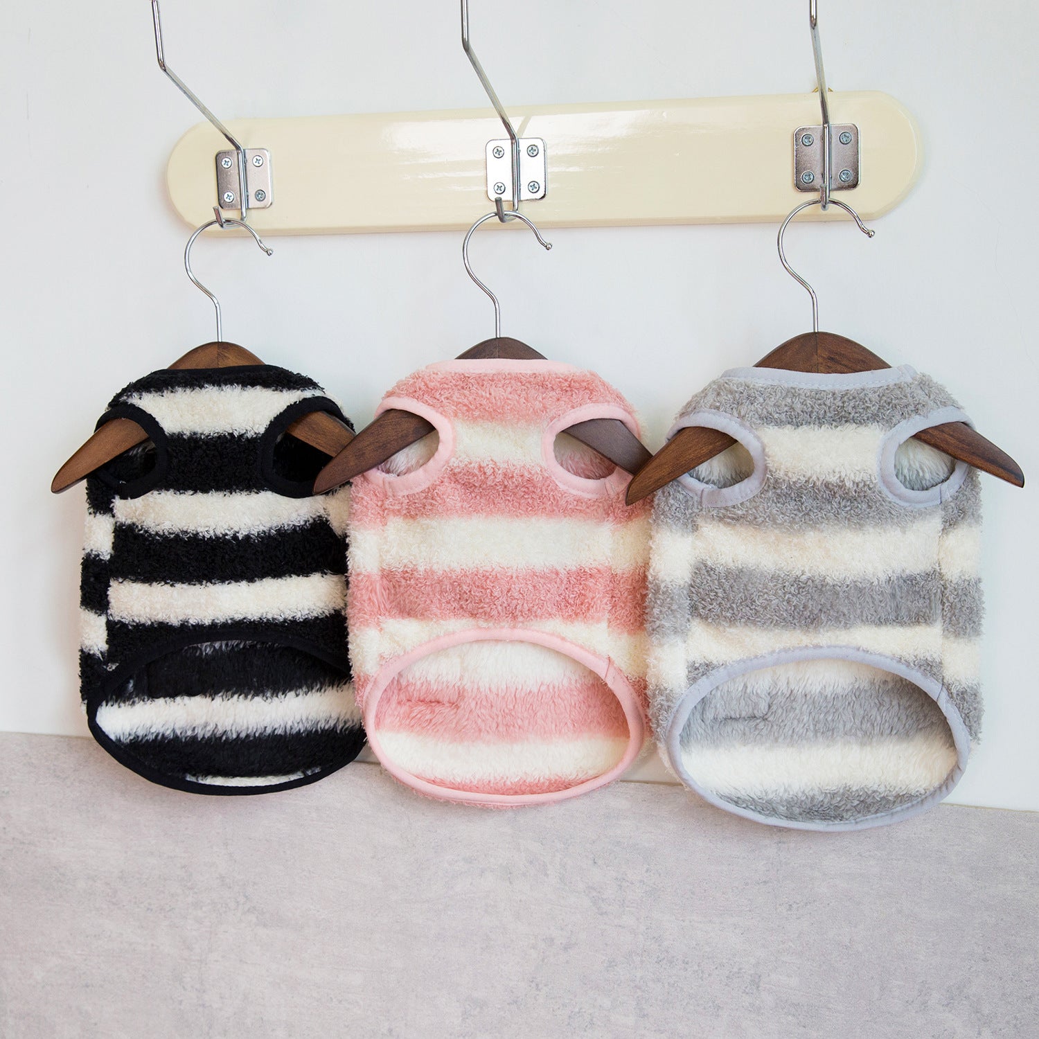本日の限定商品犬の服ペット服小型犬や猫が着ることができる秋と冬の暖かく快適な大きなストライプフリースのベスト