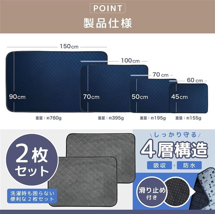 商品名 | 洗えるペットシーツ 犬 猫 おしっこマット 小型犬 ペットマット 丸ごと洗える 繰り返し使える トイレ下敷きマット 漏れ防止 2枚セット |