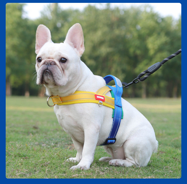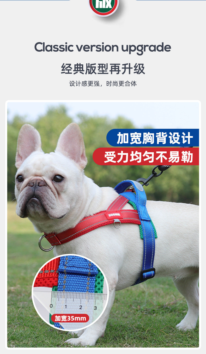 熱い販売のペット胸および背部サドルの爆発証拠の穿孔器 快適な子犬の胸の馬具の屋外の犬の鎖の色ブロックの夏