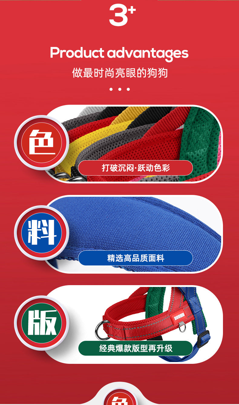 熱い販売のペット胸および背部サドルの爆発証拠の穿孔器 快適な子犬の胸の馬具の屋外の犬の鎖の色ブロックの夏