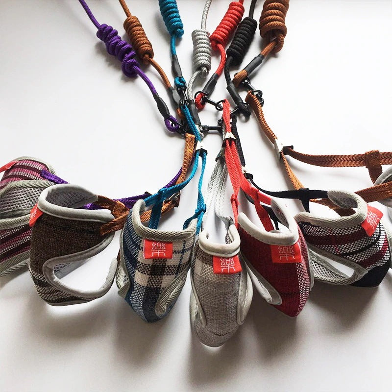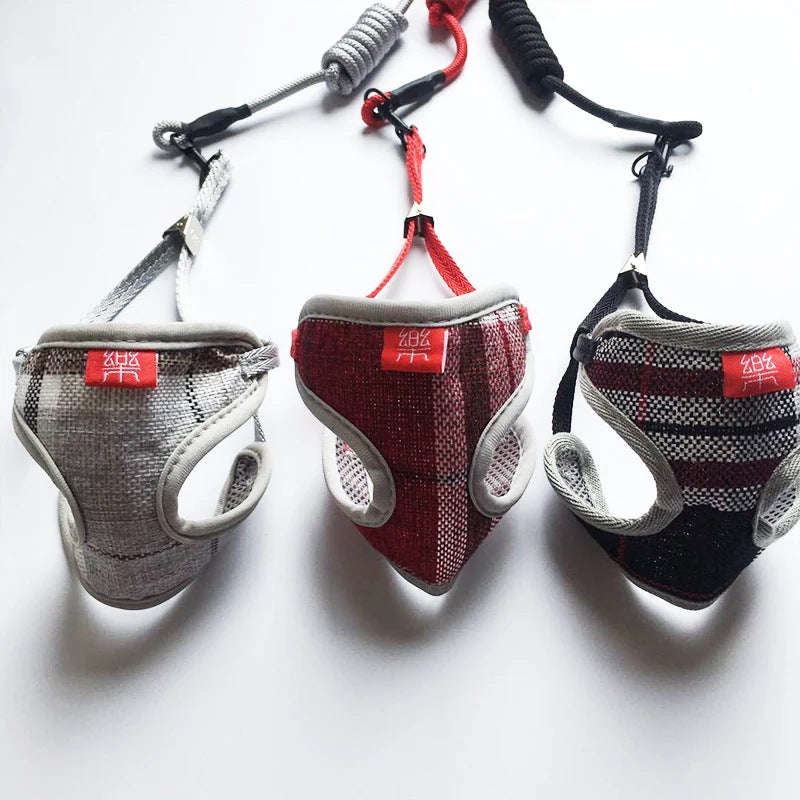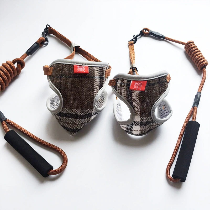 牵引绳背心式透ガス狗狗牵引宠物猫咪胸背带格子